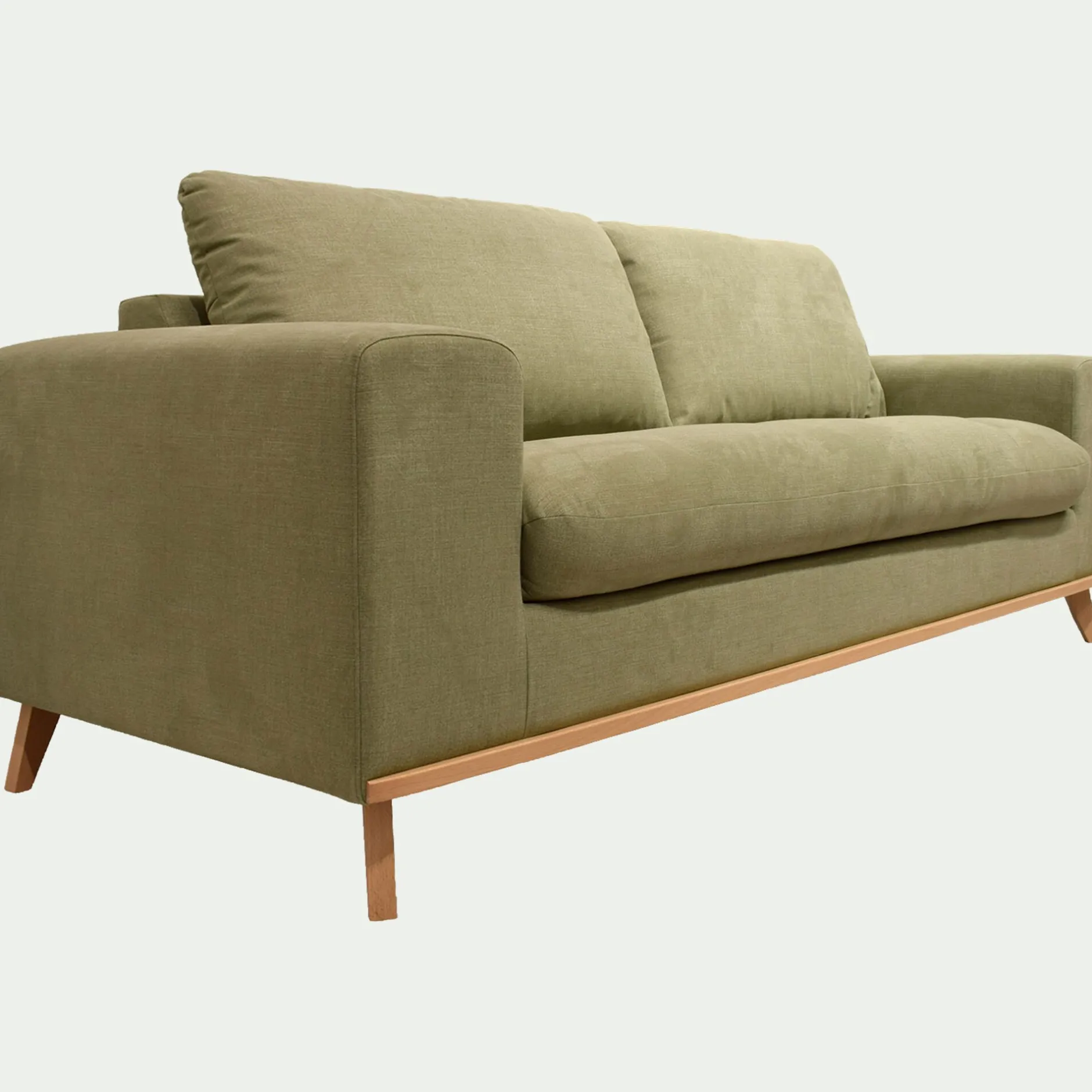 Le canapé 3 places convertible Capia allie confort, style et praticité. Ce canapé est revêtu du tissu Cosmo dans notre coloris vert kaki, tendance et naturel. De jour, ce canapé droit offre une assise spacieuse pour 3 personnes. Le soir venu, il se déplie en quelques secondes grâce à son système express et révèle un couchage de 140×188 cm. Son matelas intégré de 10 cm d’épaisseur est parfait pour un usage occasionnel, par exemple pour recevoir famille ou amis pour la nuit. Son tissage résistant apporte douceur et durabilité, parfait pour une utilisation quotidienne. Son design repose sur une structure en pin massif et des pieds en hêtre massif, gage de solidité et de durabilité. Les coussins de dos déhoussables facilitent l’entretien. Une fabrication française qui conjugue esthétique et fonctionnalité.