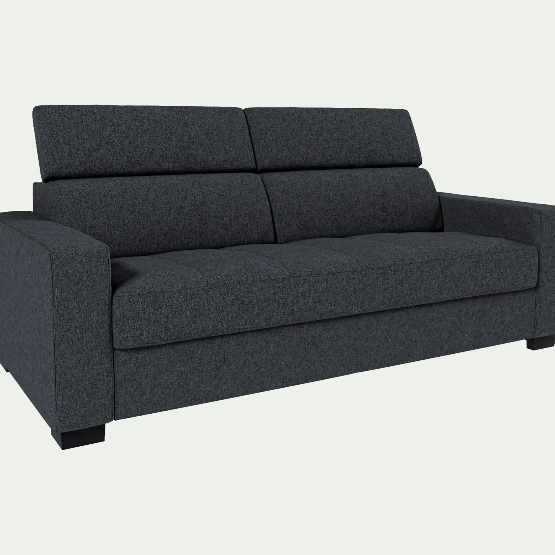 Mauro est une gamme de canapés au style contemporain et d’une grande élégance pour décorer votre salon. Conçu en Italie, il est le fruit d’un travail minutieux et d’un savoir-faire unique. Ce canapé 3 places en tissus pop couleur gris anthracite, arborant de larges accoudoirs de 20 cm et des têtières relevables, vous procurent un confort d’assise incomparable et vous invite à savourer d’agréables moments de détente. Un meuble de fabrication européenne qui sera la pièce maîtresse de votre salon va et sublimera votre décoration d’intérieur.