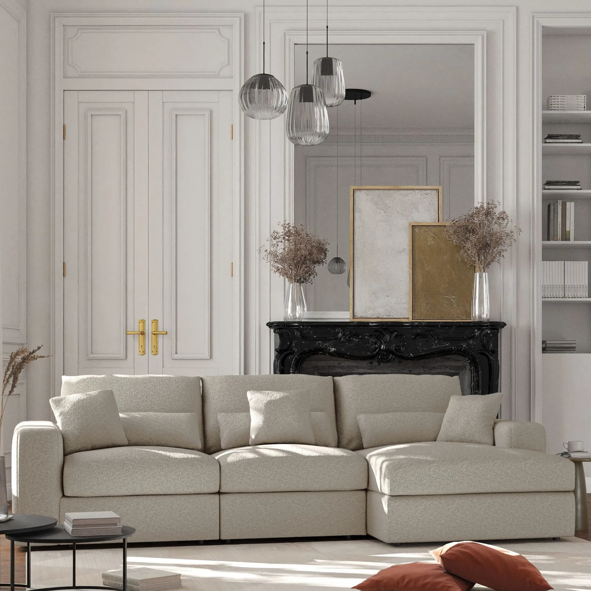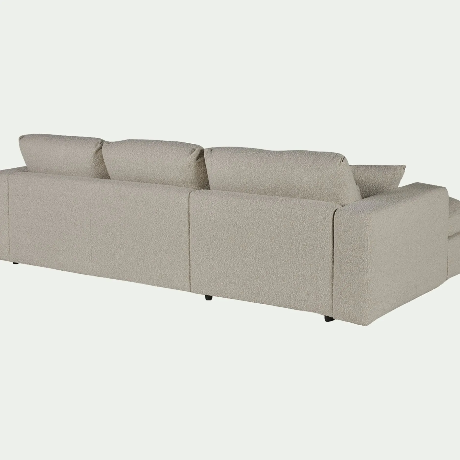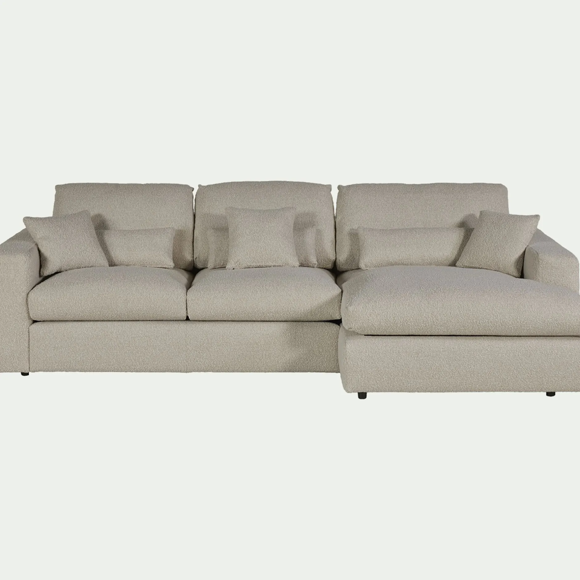 Avec son petit angle à droite, ce canapé d’angle est une invitation aux moments partagés. Son revêtement en tissu bouclette, à la fois doux et résistant, enveloppe l’espace d’une chaleur réconfortante. Son coloris blanc écru, intemporel, s’harmonise avec tous les styles d’intérieur. Pensé pour le confort, ce canapé fixe se compose d’une assise spacieuse, d’un dossier accueillant et de coussins déhoussables pour un entretien facilité. Des coussins décoratifs viennent parfaire l’ensemble, ajoutant une touche cosy. Un canapé idéal pour des instants de détente en famille ou entre amis.