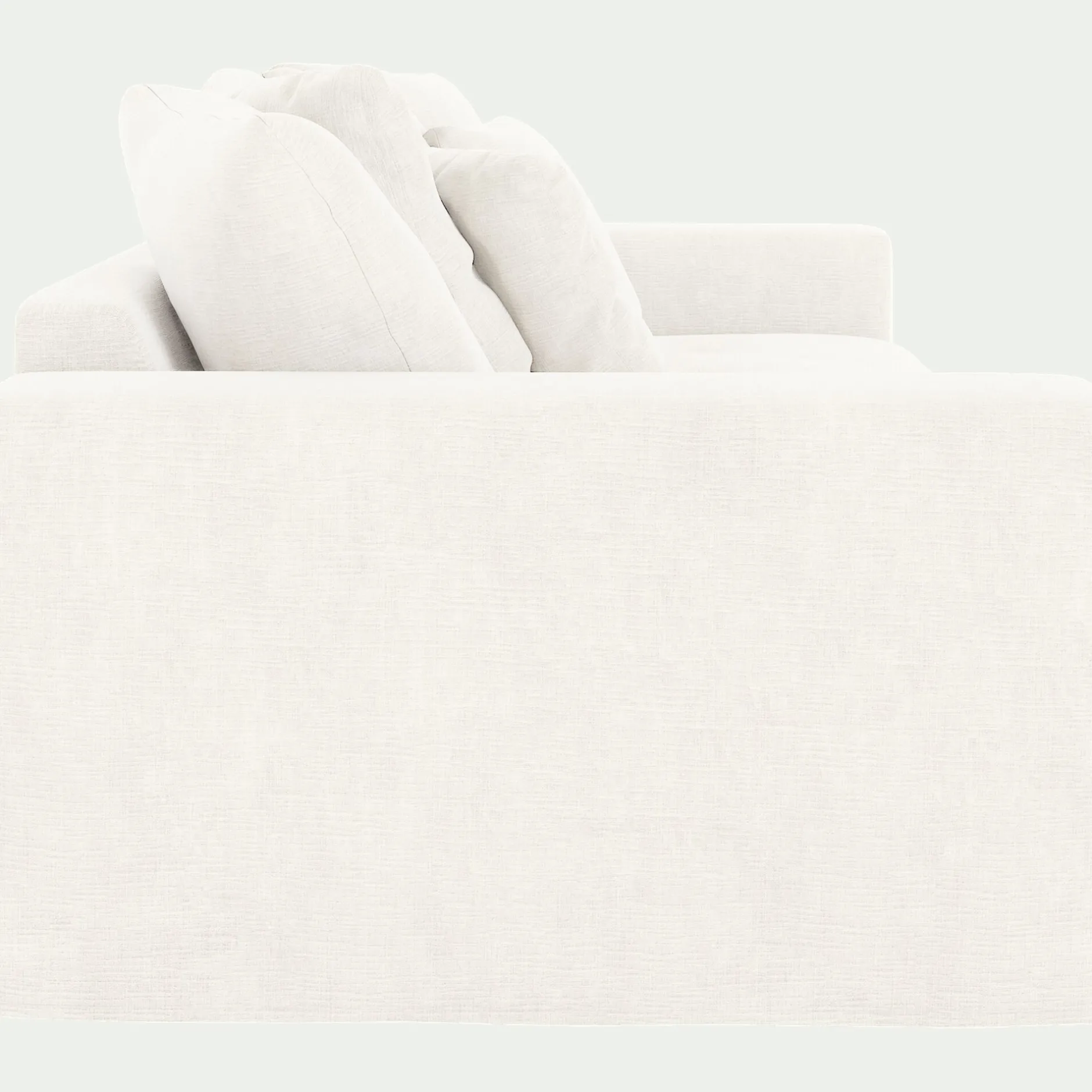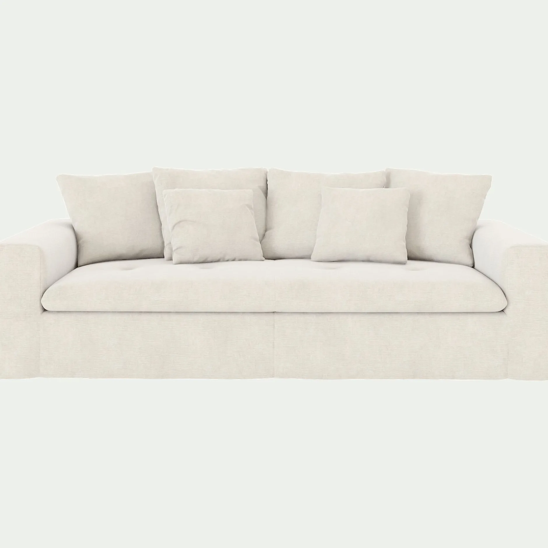 Laissez vous séduire par le charme du canapé Elea, un meuble pensé pour sublimer votre salon. Ce canapé 4 places fixe allie à la fois esthétisme et confort, pour un espace de vie chaleureux. Son dossier à l’accueil plume vous procure une sensation de bien-être douillet alors que sa profonde assise vous donne une impression cocooning d’enveloppement. Ses coussins de dossier, soigneusement jetés, accentuent son aspect accueillant tout en apportant une touche de décoration raffinée. Son surmatelas délicatement intégré confère à l’ensemble une sensation de légèreté fortement appréciable. En ce qui est du design, ses lignes épurées et sa jupe font de lui un atout charme intemporel. Revêtu d’un tissu doux de couleur blanc ventoux, il vous permet de vous prélasser tout en apportant un côté lumineux et apaisant à votre pièce. Idéal pour la détente ou pour recevoir famille et amis, il incarne à merveille l’équilibre entre sophistication et confort inouï.