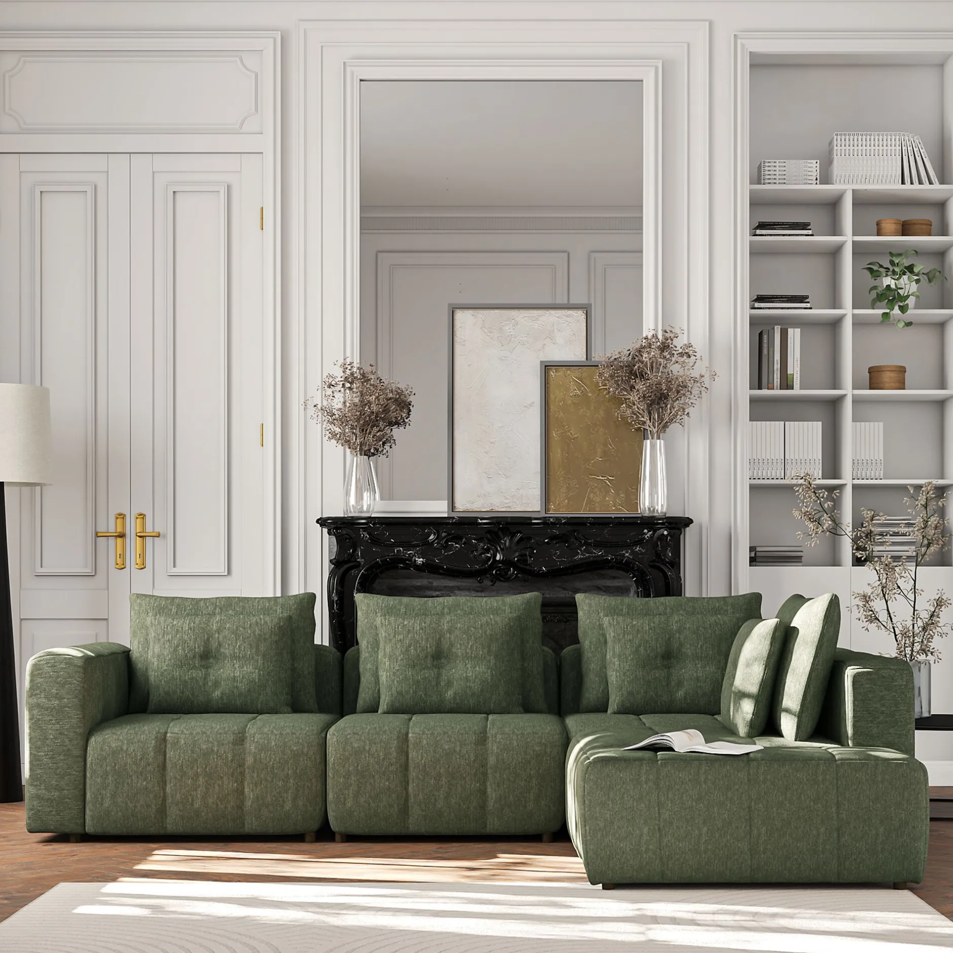 - Angle gauche en tissu chenille benjo – vert cèdre