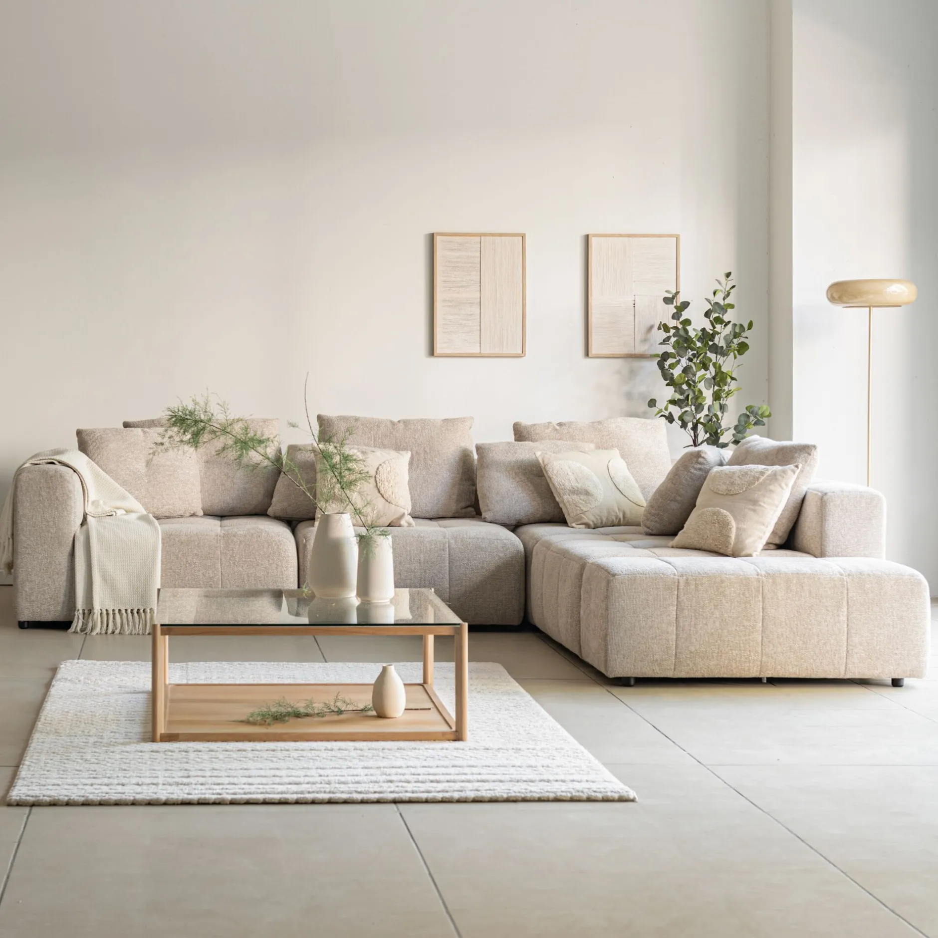 - Angle droit de canapé modulable en tissu Benjo – beige roucas