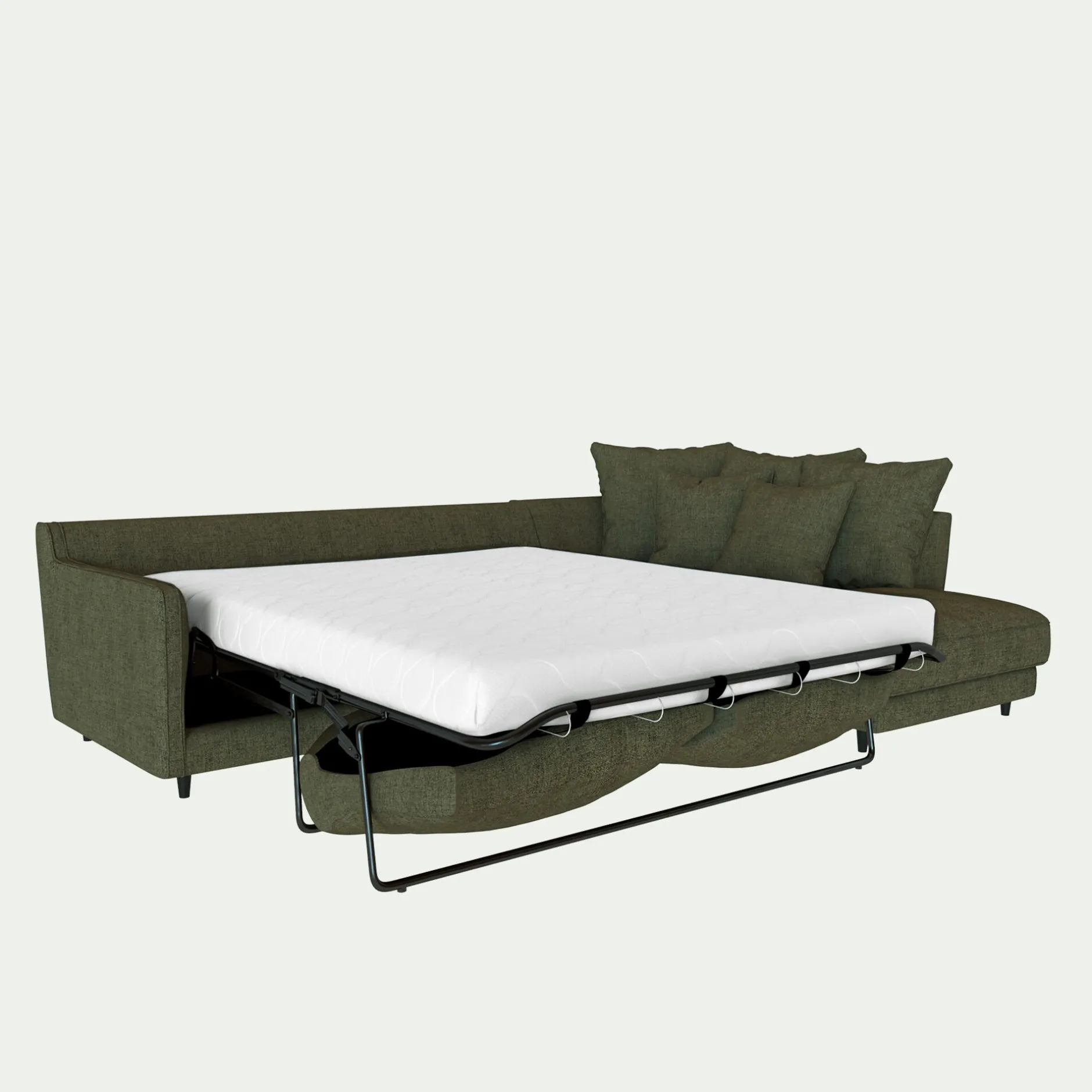 Un canapé d’angle convertible qui incarne le savoir-faire unique et traditionnel des Italiens. Son look est inspiré du second Empire, l’époque où Napoléon III demande au baron Haussmann de donner un nouveau visage à Paris. Un style luxueux, une assise profonde et généreuse, accompagnée d’épais coussins, Lenita est un canapé majestueux et intemporel. Fabriqué à Farra di Soligo au nord de Venise, il est garni de plumes d’oie. Un confort moelleux pour se lover dans un confort incomparable. Sa structure en bois est renforcée par du sapin massif pour une grande longévité. Entièrement déhoussable, vous pourrez facilement le faire nettoyer par un professionnel. Lenita se sont des lignes élégantes, sublimées par des finitions réalisée à la main. Convertible, il vous offre un matelas pour un couchage occasionnel confortable. Un canapé déco d’une qualité exceptionnelle et un coloris vert cèdre tendance et chaleureux.