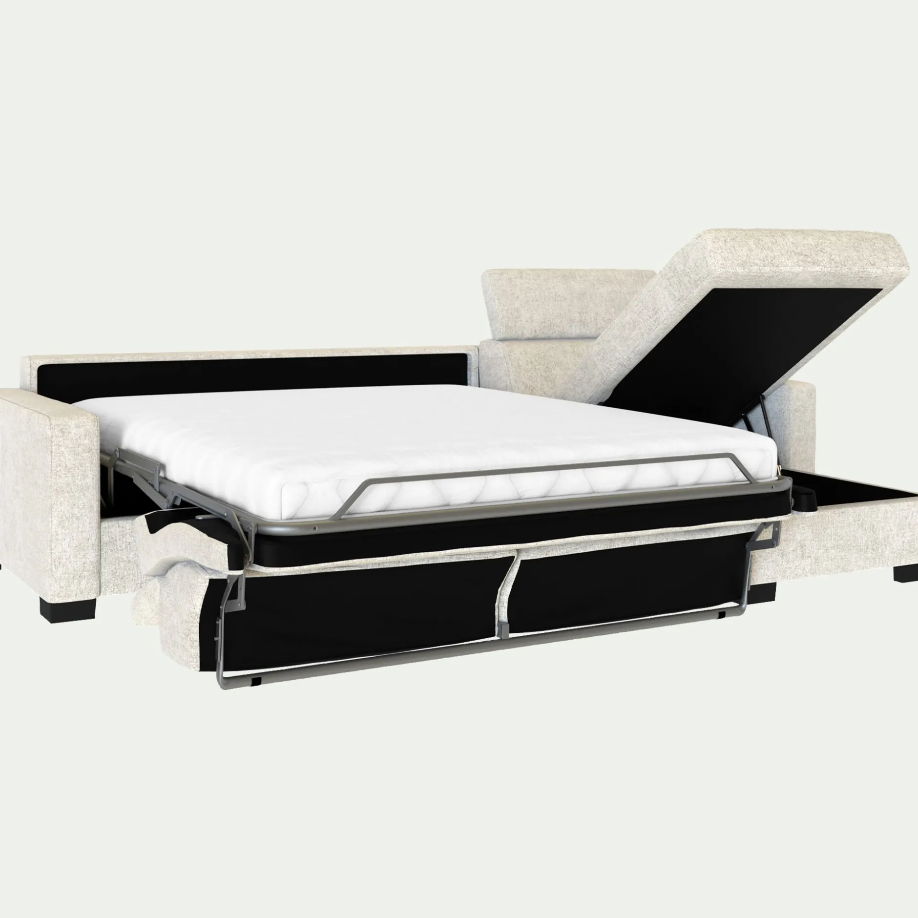 Couchage: Le canapé convertible ouvert mesure L.271 x P.205 cm avec un matelas de 140×195 cm.