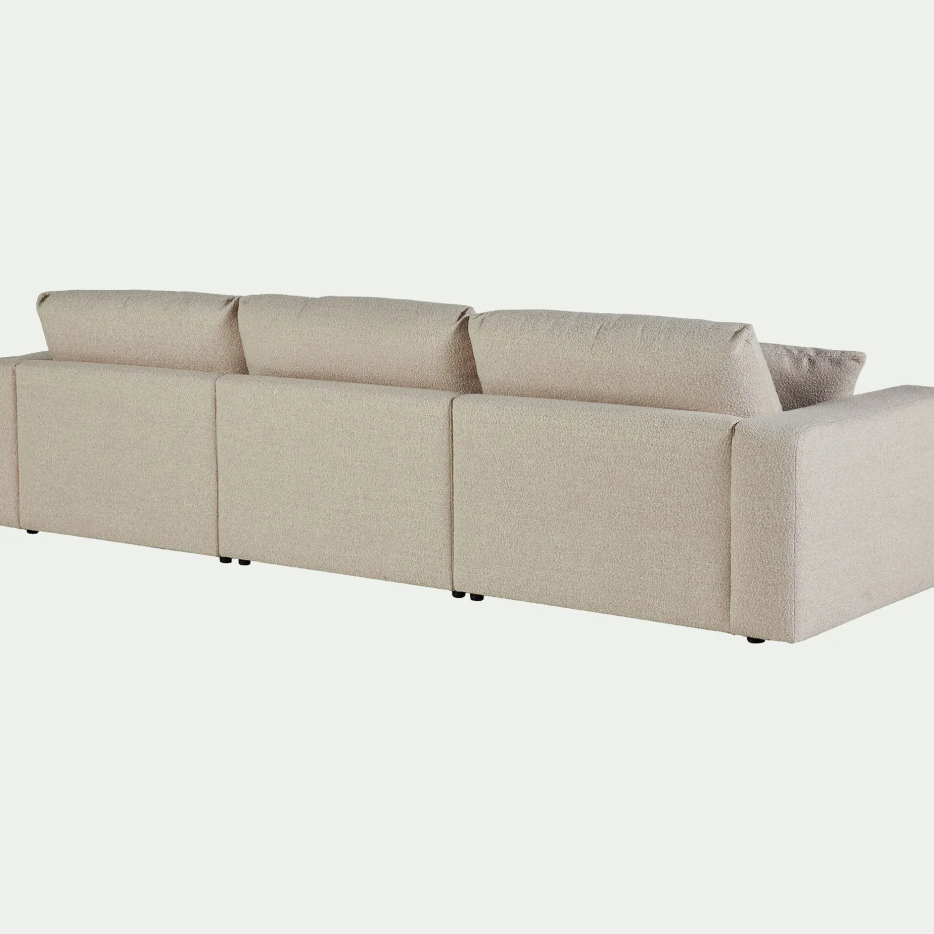 Le canapé Piuma est idéal pour se prélasser dans votre salon. Avec ses grandes assises, ce canapé d’angle droit en tissu bouclette vous offre un confort exceptionnel. Il vous permet de vous détendre au coeur de coussins moelleux dans un nuage de douceur renforcé par son tissu délicat. Vous pourrez ainsi recevoir famille et amis lors d’un moment apaisant. Ce canapé fixe de couleur blanche apporte également une touche design moderne et élégante à votre salon. Son tissu bouclette donne un côté cocooning qui vous permet de transformer votre pièce en un espace chaleureux.