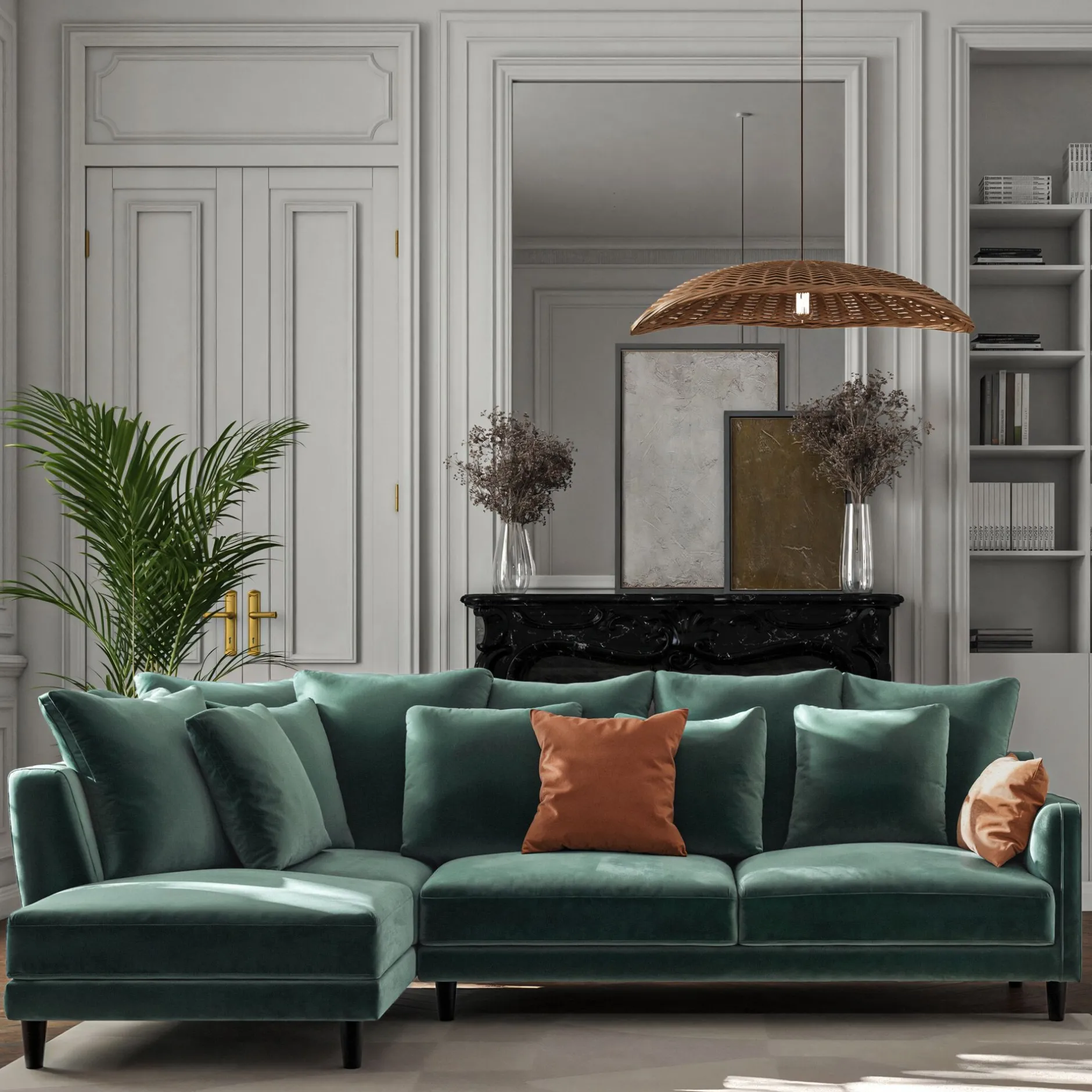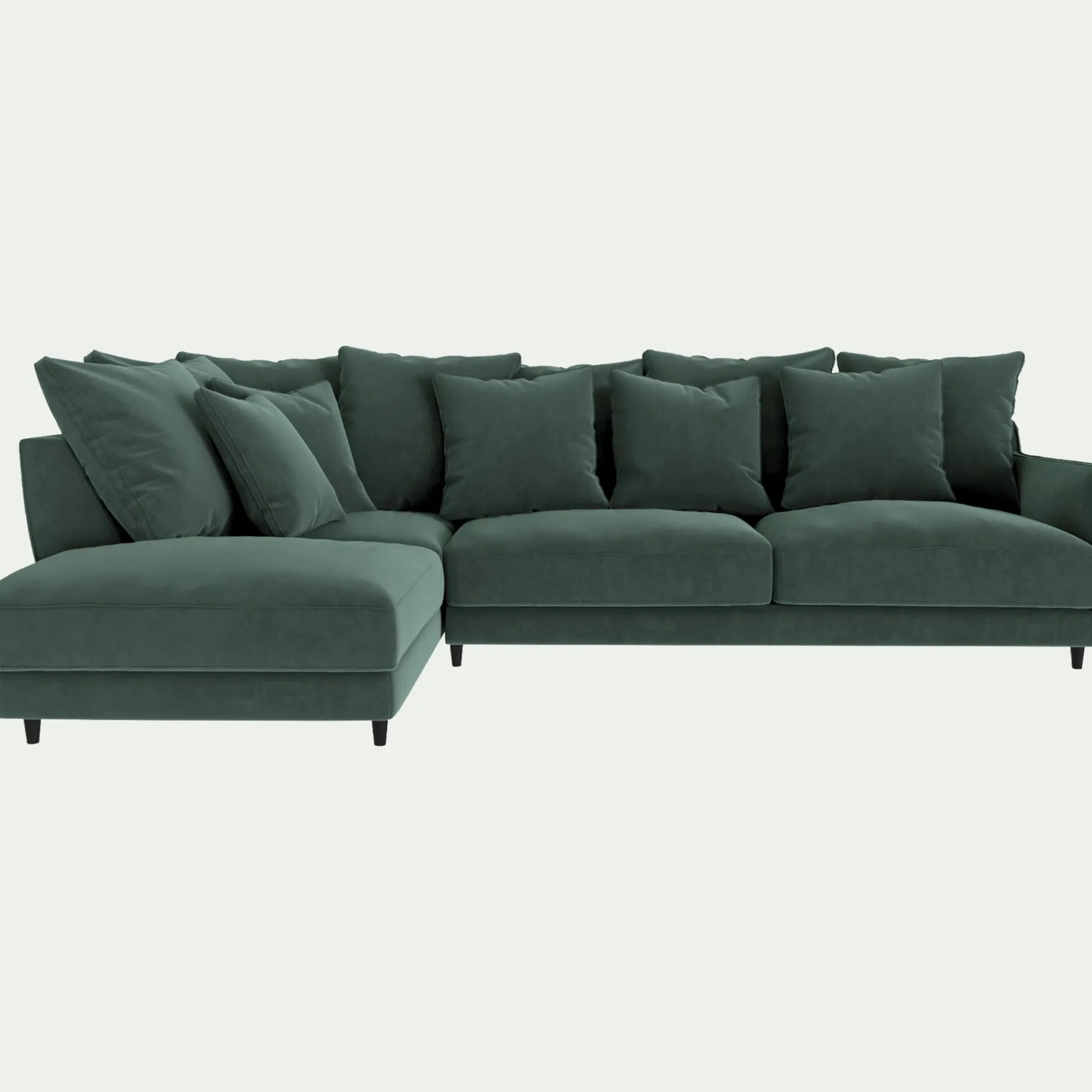 Majestueux et raffiné, le canapé d’angle Lenita avec angle à gauche incarne l’élégance du style Second Empire avec une touche contemporaine. Fabriqué à la main en Italie, dans la région de Farra di Soligo, il témoigne d’un savoir-faire traditionnel d’exception. Son tissu velvet dans notre coloris vert sauge, naturel et apaisant, s’harmonise avec tous les intérieurs, tandis que ses lignes généreuses et ses coussins moelleux invitent à la détente. Avec son assise profonde et son rembourrage en plumes d’oie, ce grand canapé fixe offre un confort exceptionnel pour accueillir famille et amis. Sa structure robuste en bois renforcé de sapin massif, issu de forêts certifiées FSC®, garantit une grande longévité. Entièrement déhoussable, il se nettoie facilement. Un canapé 5 places qui conjugue élégance, confort et durabilité, et qui deviendra sans conteste la pièce maîtresse du séjour.