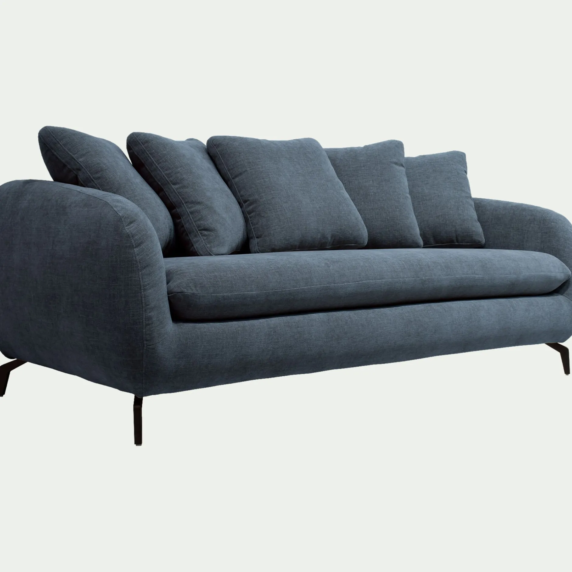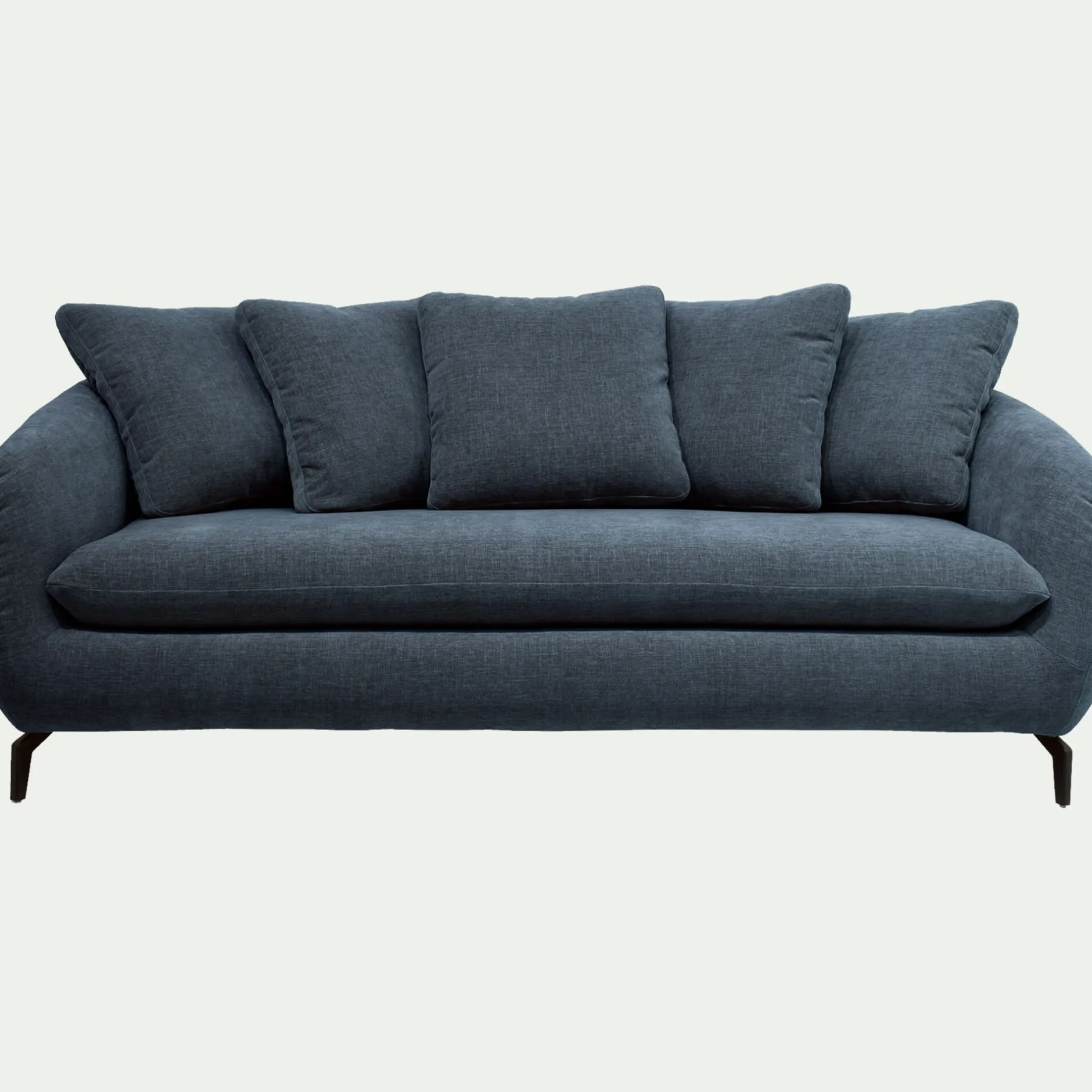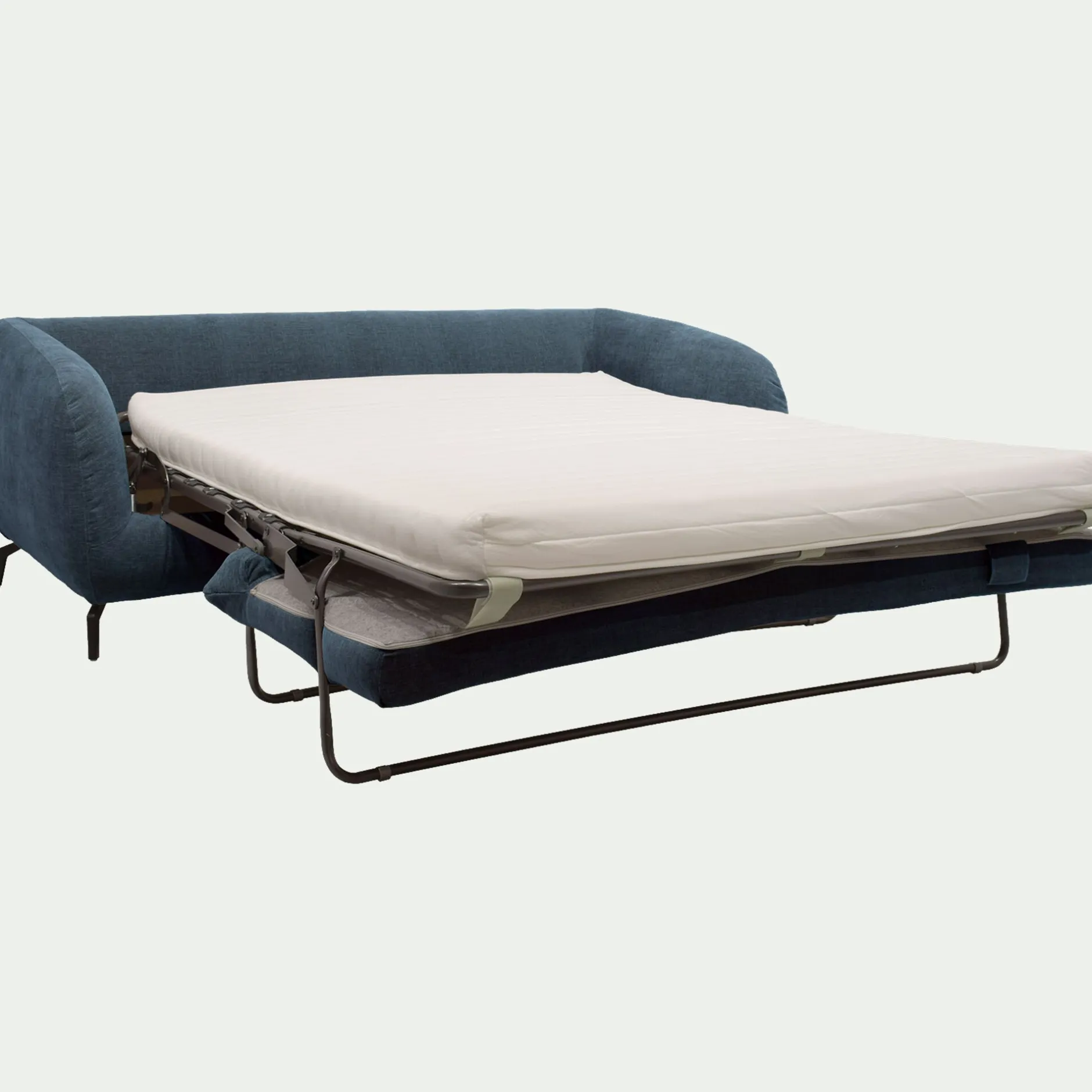 Un joli canapé convertible en tissu pour profiter agréablement de votre salon. Un look contemporain et accueillant, sublimé par un piétement original en acier noir. Vous apprécierez la forme du dossier et des accoudoirs qui vous offrent un maintien optimal de votre dos pour un confort d’assise exceptionnel. Un canapé fabriqué en France, dans des ateliers proches de la ville de Bourge, qui incarne l’excellence du savoir-faire français. Un coloris bleu qui apporte une note lumineuse et tendance à votre déco de salon.
