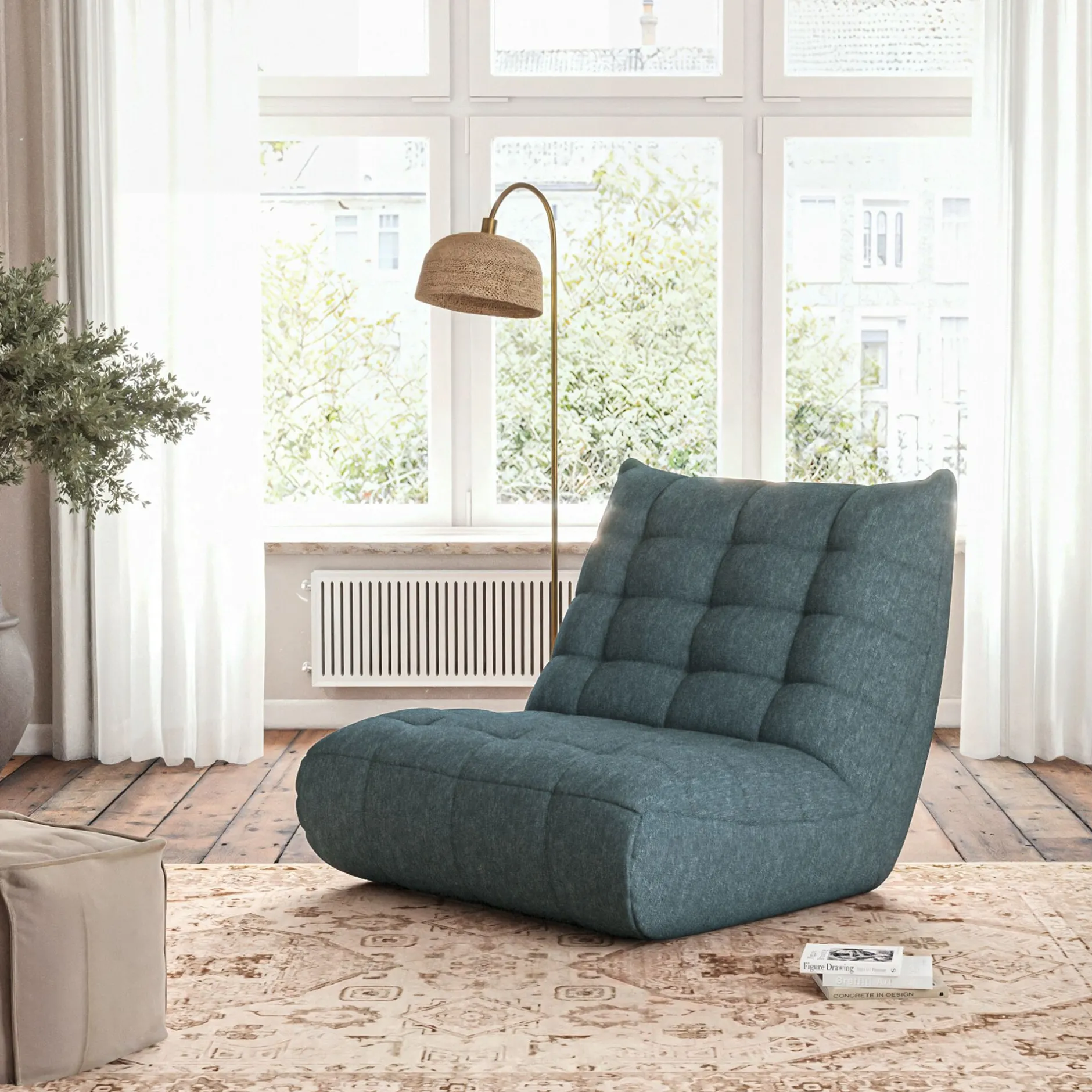 Suspension : suspension d’assise par ressort Nosag et mousse polyuréthane Densité 30kg/m³ . Dossier avec sangles élastiques et mousse polyuréthane Densité 17kg/m³.