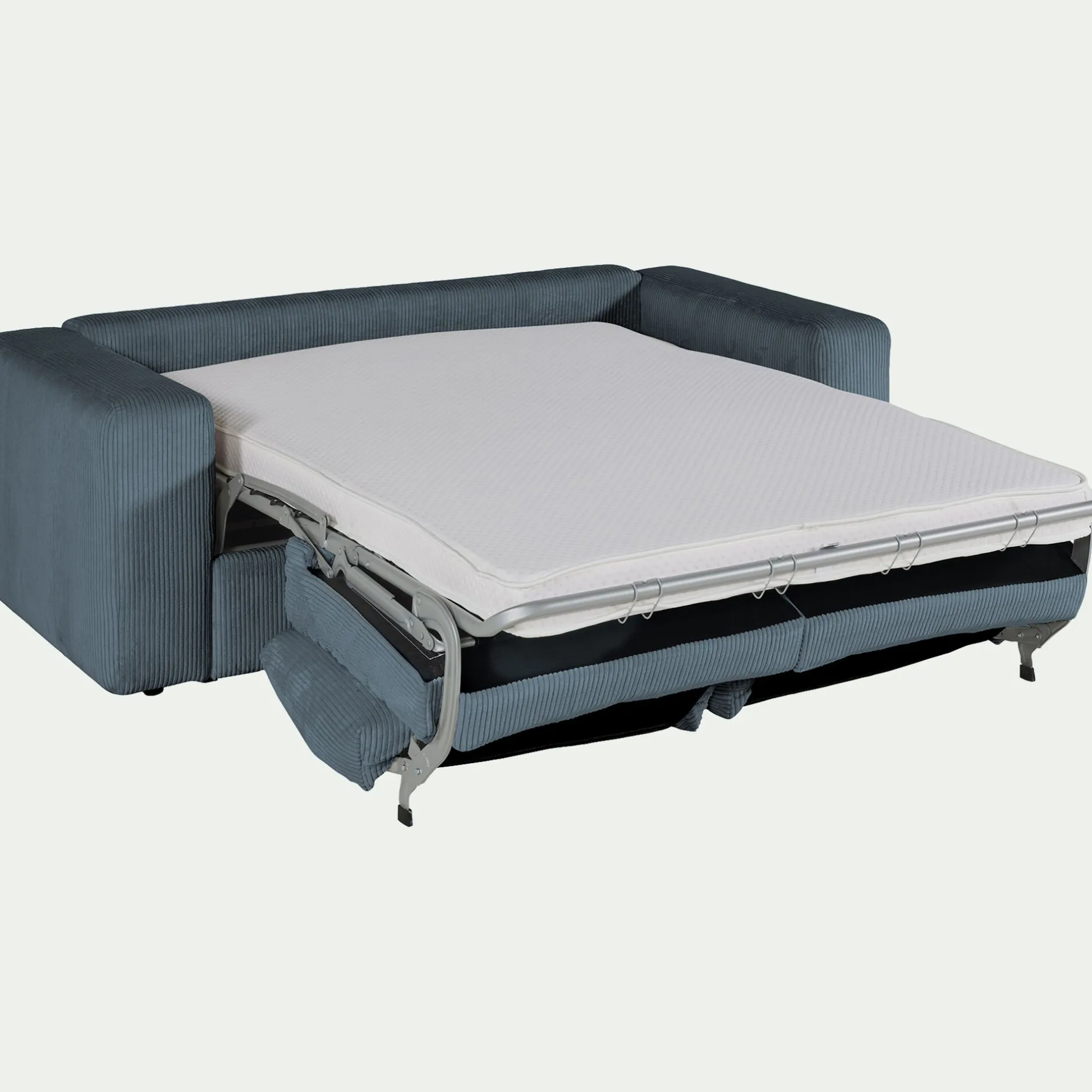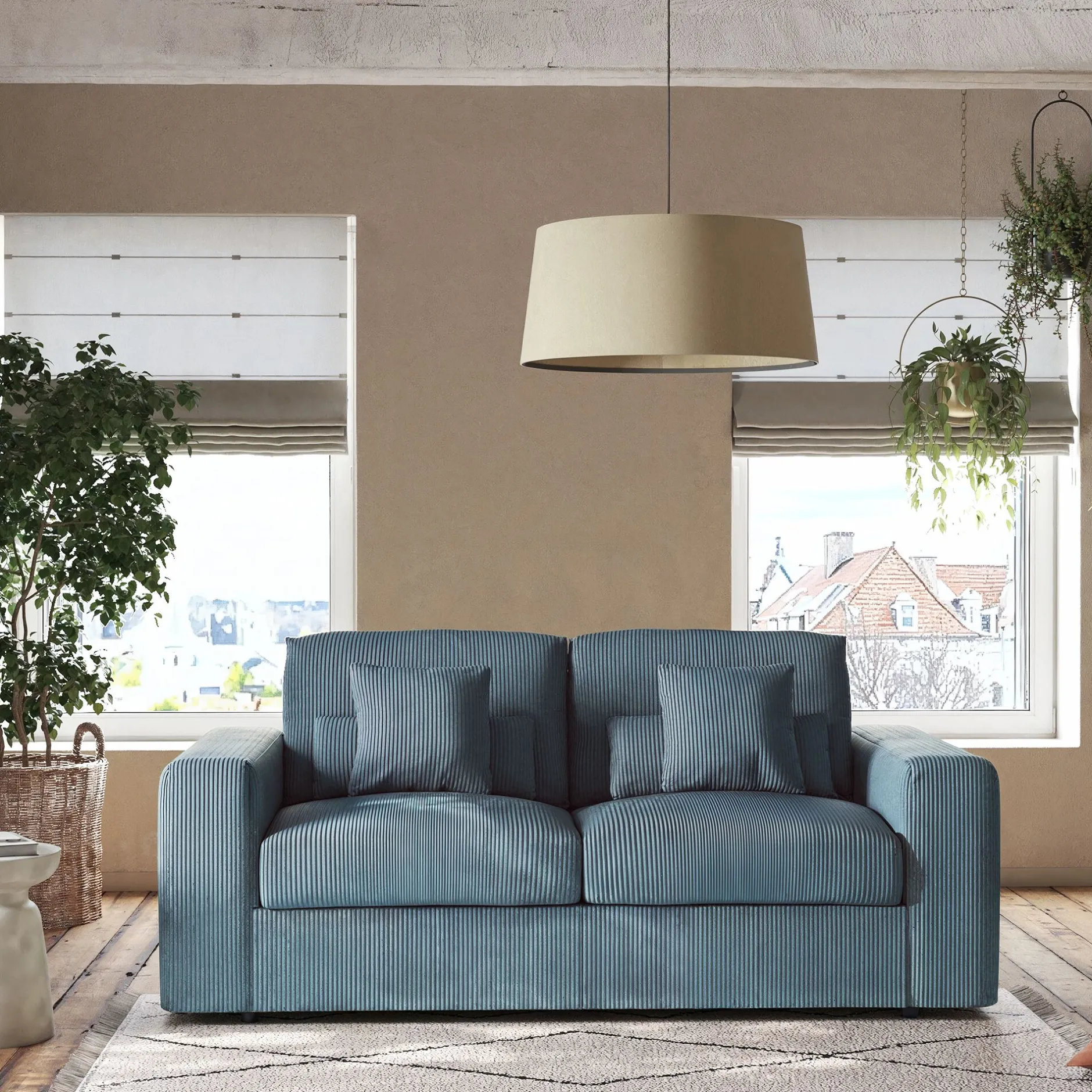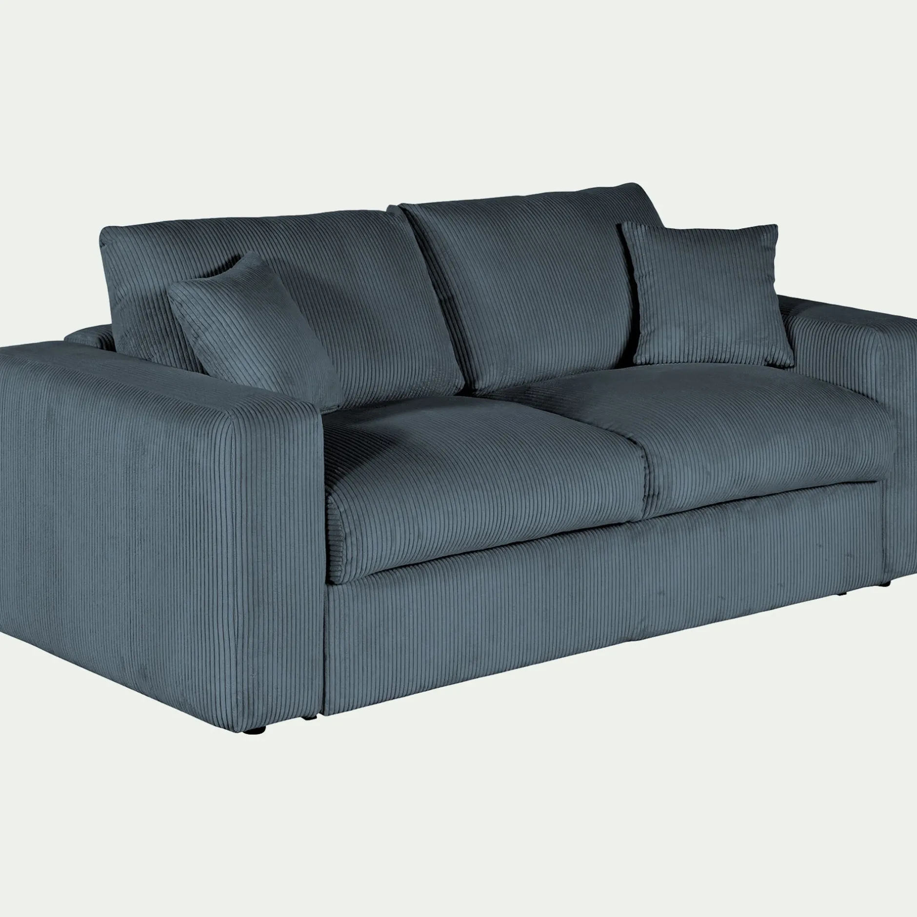 Le canapé Piuma est idéal pour se prélasser dans votre salon. Avec ses grandes assises, ce canapé 3 places convertible en velours côtelé vous offre un confort exceptionnel. Il vous permet de vous détendre au coeur de coussins moelleux qui vous font sentir dans un nuage de douceur, une sensation renforcée par son tissu délicat. Vous pourrez ainsi recevoir famille et amis à partager des soirées conviviales lors d’un moment apaisant et les inviter à dormir grâce à son couchage quotidien. Pour les plus petits appartements, il pourra vous faire gagner de la place grâce à son double usage. Ce canapé convertible de couleur bleu apporte également une touche design moderne et élégante à votre salon. Son velours côtelé donne un côté cocooning qui vous permet de transformer votre pièce en un espace chaleureux. Piuma fait ainsi rimer confort avec esthétisme et élégance.