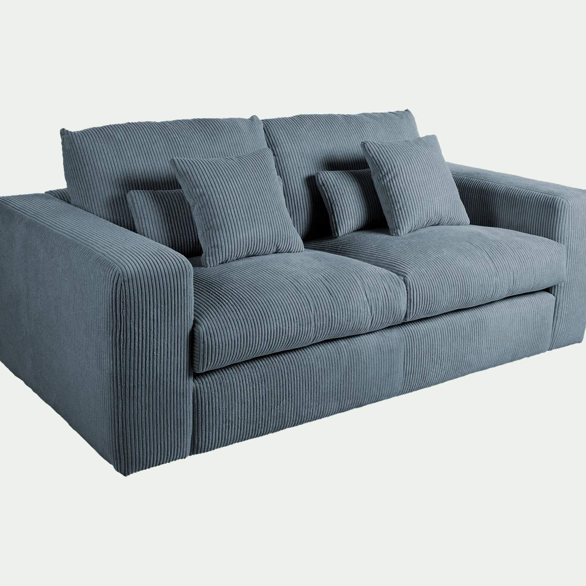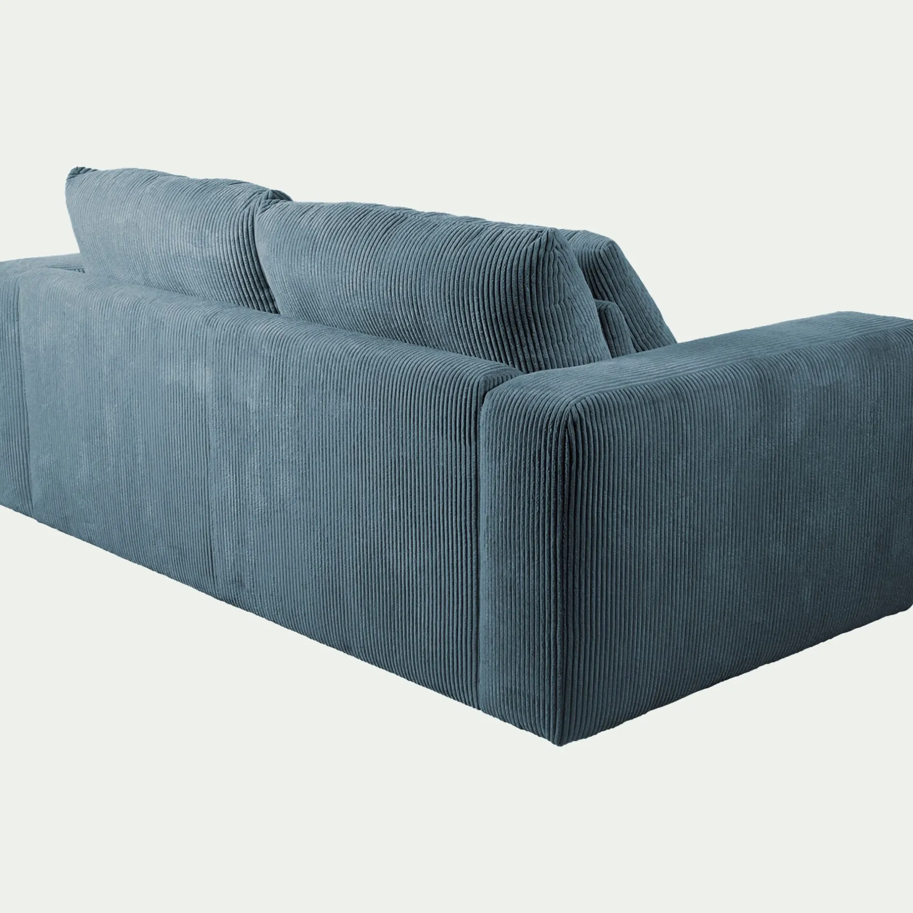Le canapé Piuma est idéal pour se prélasser dans votre salon. Avec ses grandes assises, ce canapé d’angle droit en velours côtelé vous offre un confort exceptionnel. Il vous permet de vous détendre au coeur de coussins moelleux dans un nuage de douceur renforcé par son tissu délicat. Vous pourrez ainsi recevoir famille et amis lors d’un moment apaisant. Ce canapé 3 places fixe de couleur bleue apporte également une touche design moderne et élégante à votre salon. Son velours côtelé donne un côté cocooning qui vous permet de transformer votre pièce en un espace chaleureux.