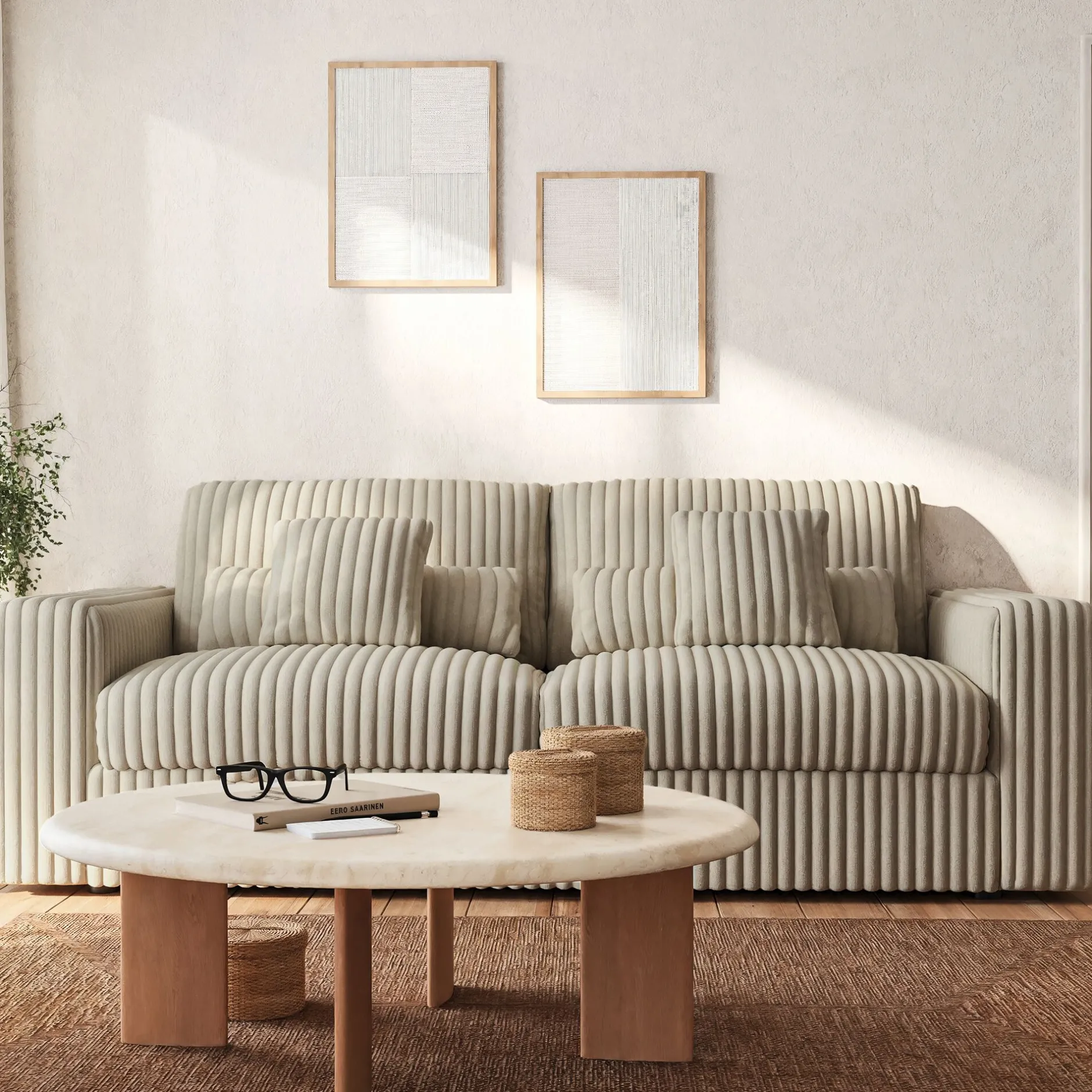 Avec son généreux format 5 places, ce grand canapé fixe invite à la détente et à la convivialité. Son revêtement en tissu côtelé XXL enveloppe l’espace d’une douceur irrésistible, offrant un effet ultra cocooning et réconfortant. Son coloris blanc ventoux illumine le salon et sublime chaque ambiance avec élégance. Pensé pour le quotidien, ce canapé droit 5 places est doté d’un dossier et d’une assise déhoussables, garantissant un entretien facile. Une pièce de caractère, fabriquée en Belgique, qui conjugue style et confort avec brio.