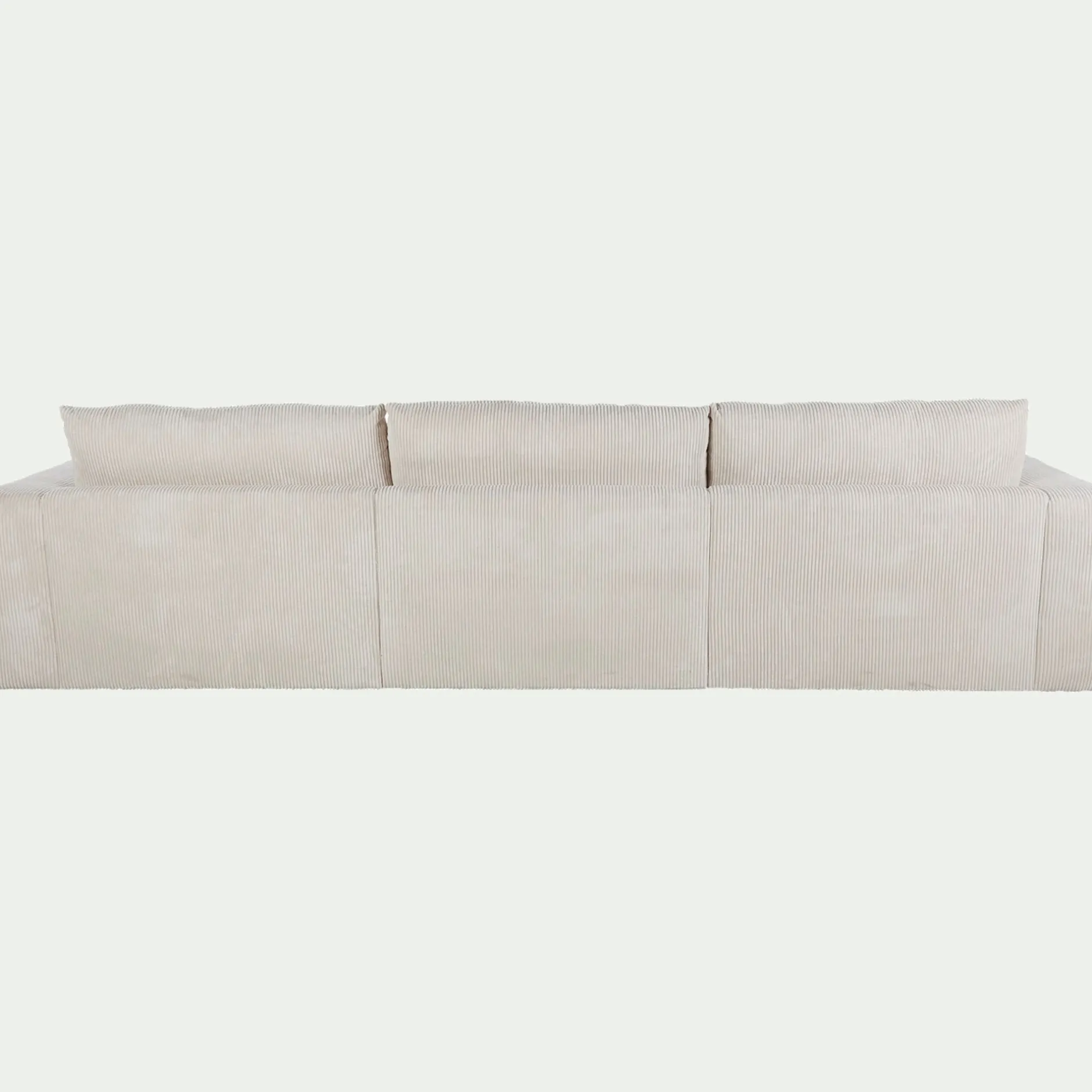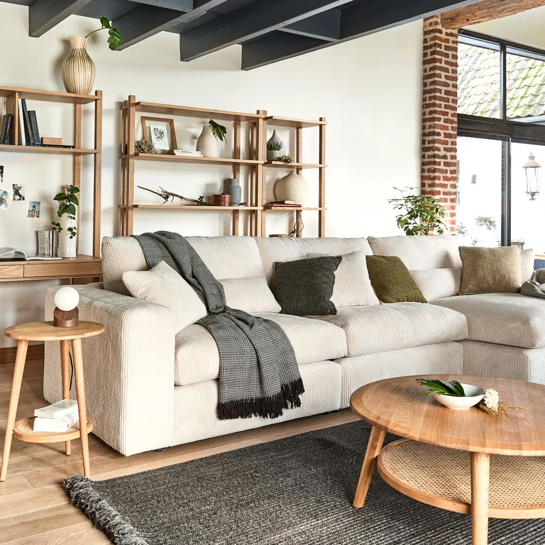 Le canapé Piuma est idéal pour se prélasser dans votre salon. Avec ses grandes assises, ce canapé d’angle droit en velours côtelé vous offre un confort exceptionnel. Il vous permet de vous détendre au coeur de coussins moelleux dans un nuage de douceur renforcé par son tissu délicat. Vous pourrez ainsi recevoir famille et amis lors d’un moment apaisant. Ce canapé fixe de couleur beige apporte également une touche design moderne et élégante à votre salon. Son velours côtelé donne un côté cocooning qui vous permet de transformer votre pièce en un espace chaleureux.