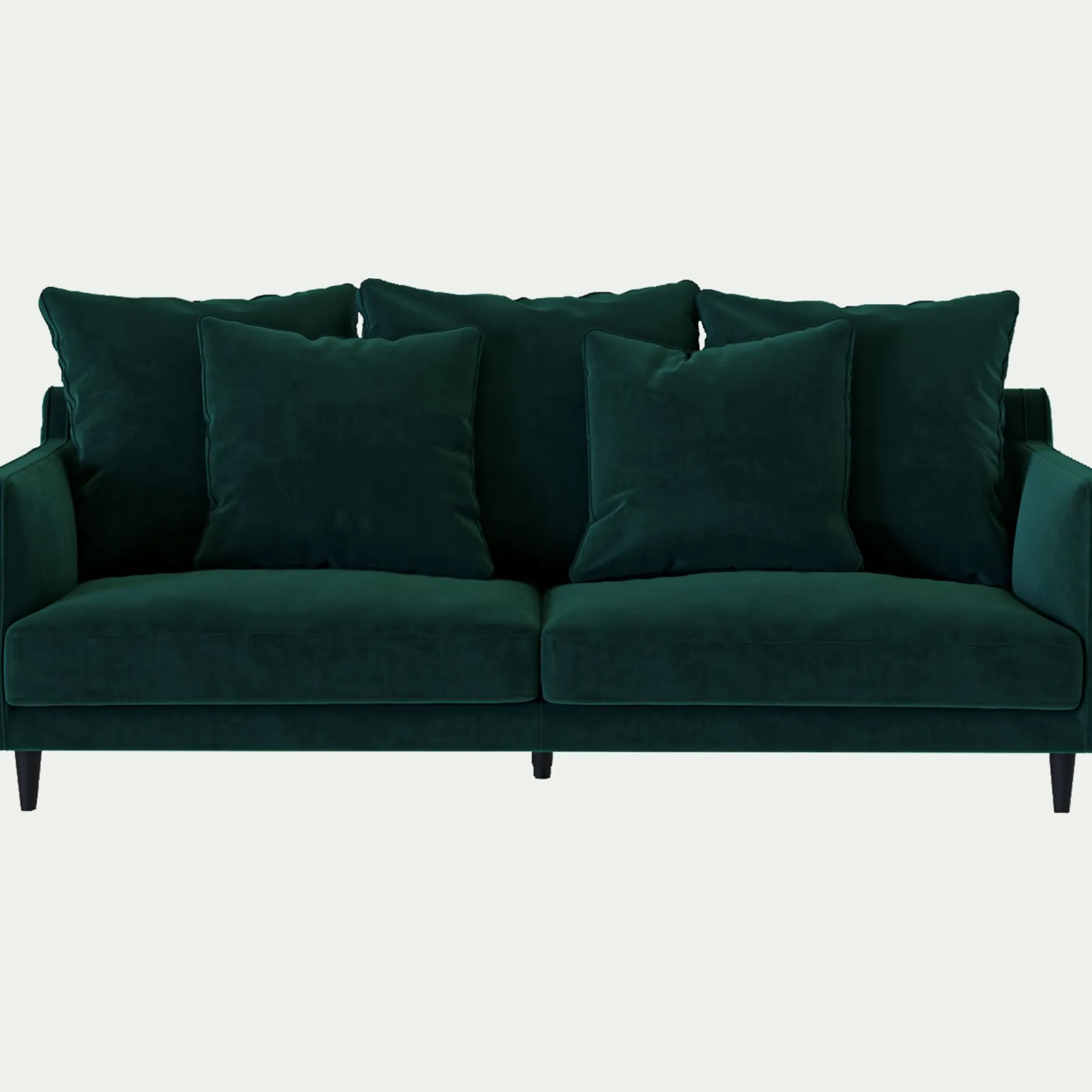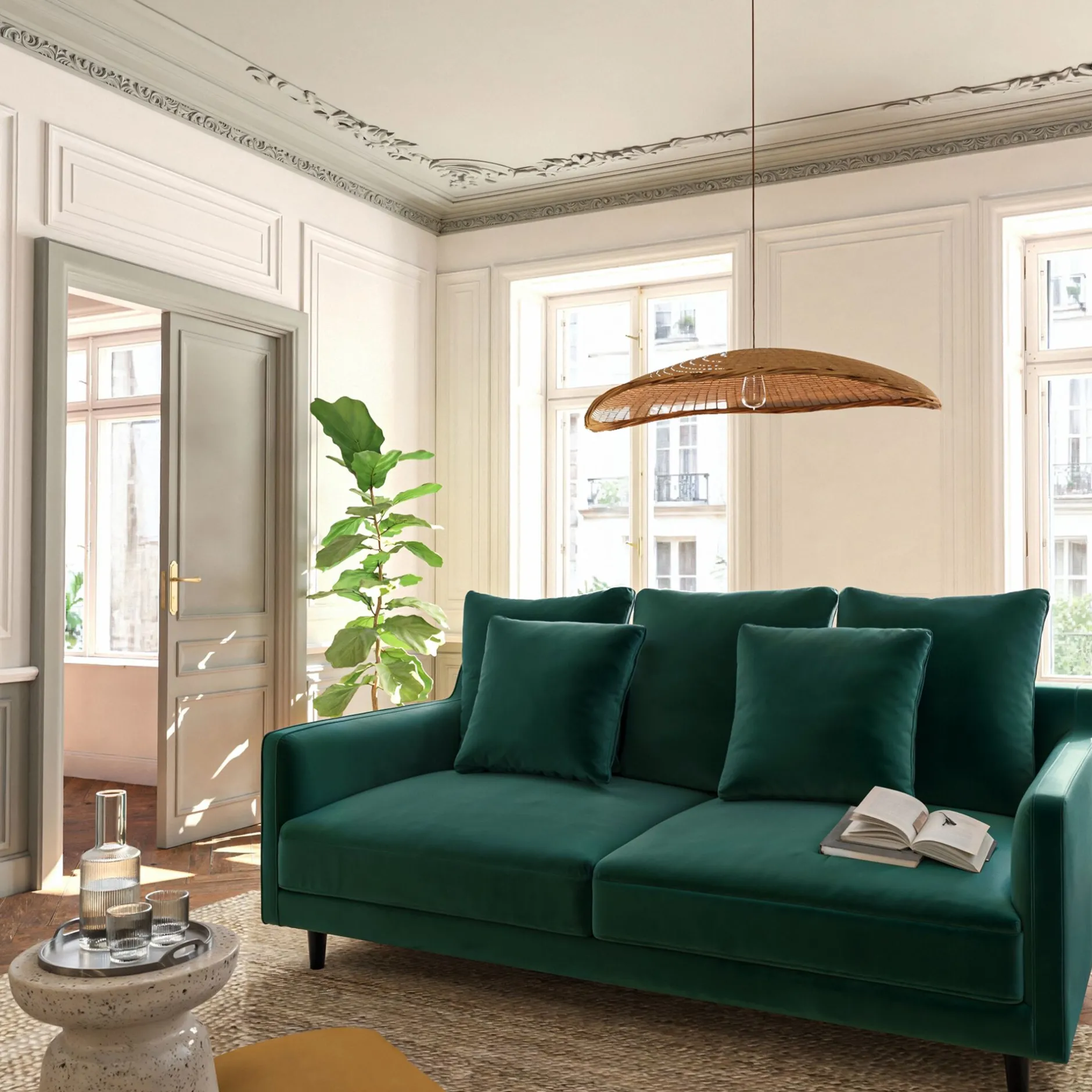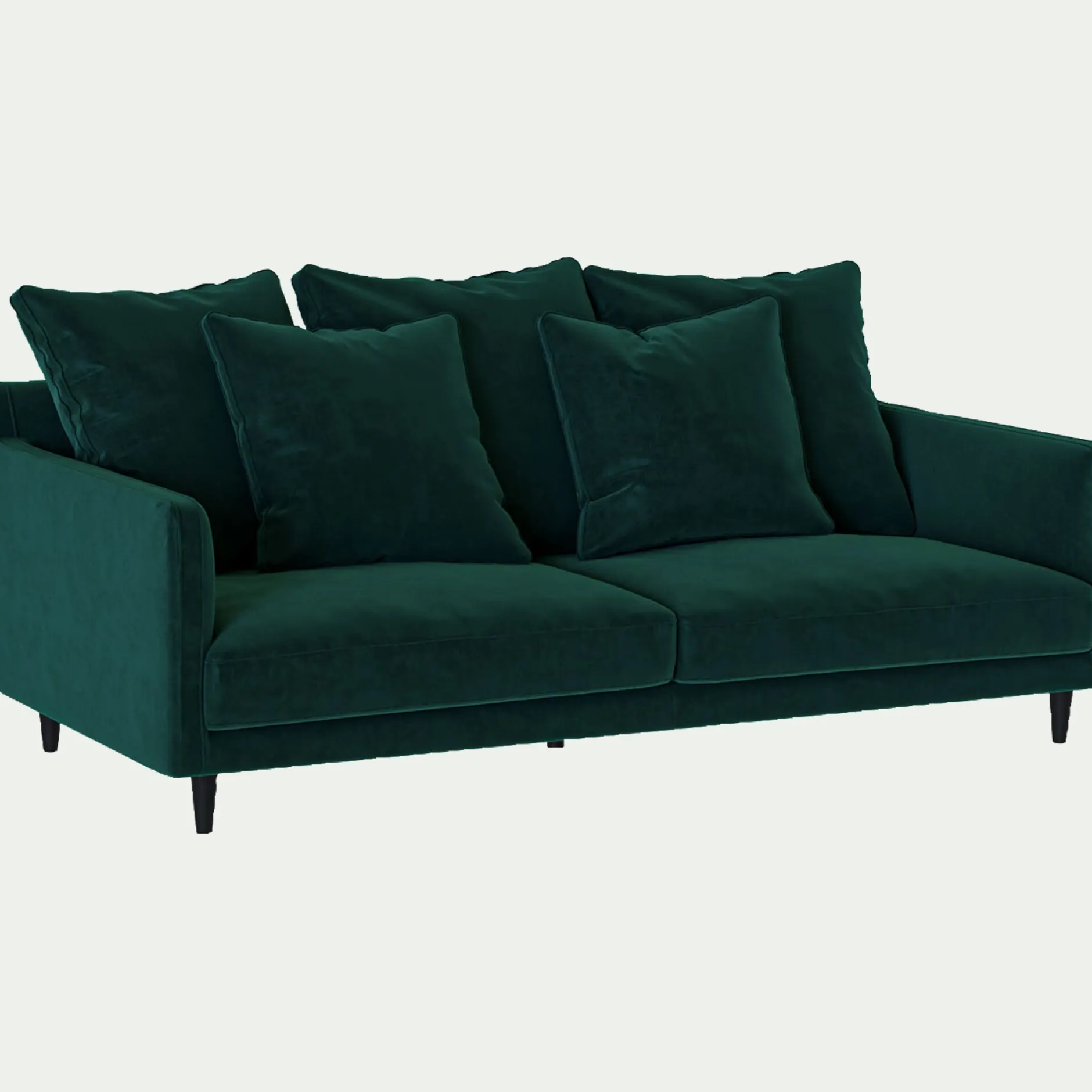 Fabriqué à la main par des passionnés italiens avec une tradition ancestrale dans le domaine du siège et de la tapisserie, ce canapé saura séduire les amateurs de déco. LENITA est une remarquable réinterprétation moderne d’un canapé, inspiré de l’époque somptueuse du Second Empire. Ce canapé fixe de 3 places en velours, avec sa couleur bleu canard, est une façon idéale de décorer son salon d’une pièce raffinée. Installez-vous confortablement dans ce canapé moelleux, garni de plumes d’oies et venez vous détendre pour des moments de pur bien-être. Sa ligne, ses courbes, la préciosité de la matière veloutée inspirent le raffinement. Les multiples coussins repositionnables vous donneront le juste confort à tout moment de la journée. Son assise profonde et généreuse invite à la paresse. Il sera incontestablement la pièce qui vous fera passer de très bons moments cocooning.