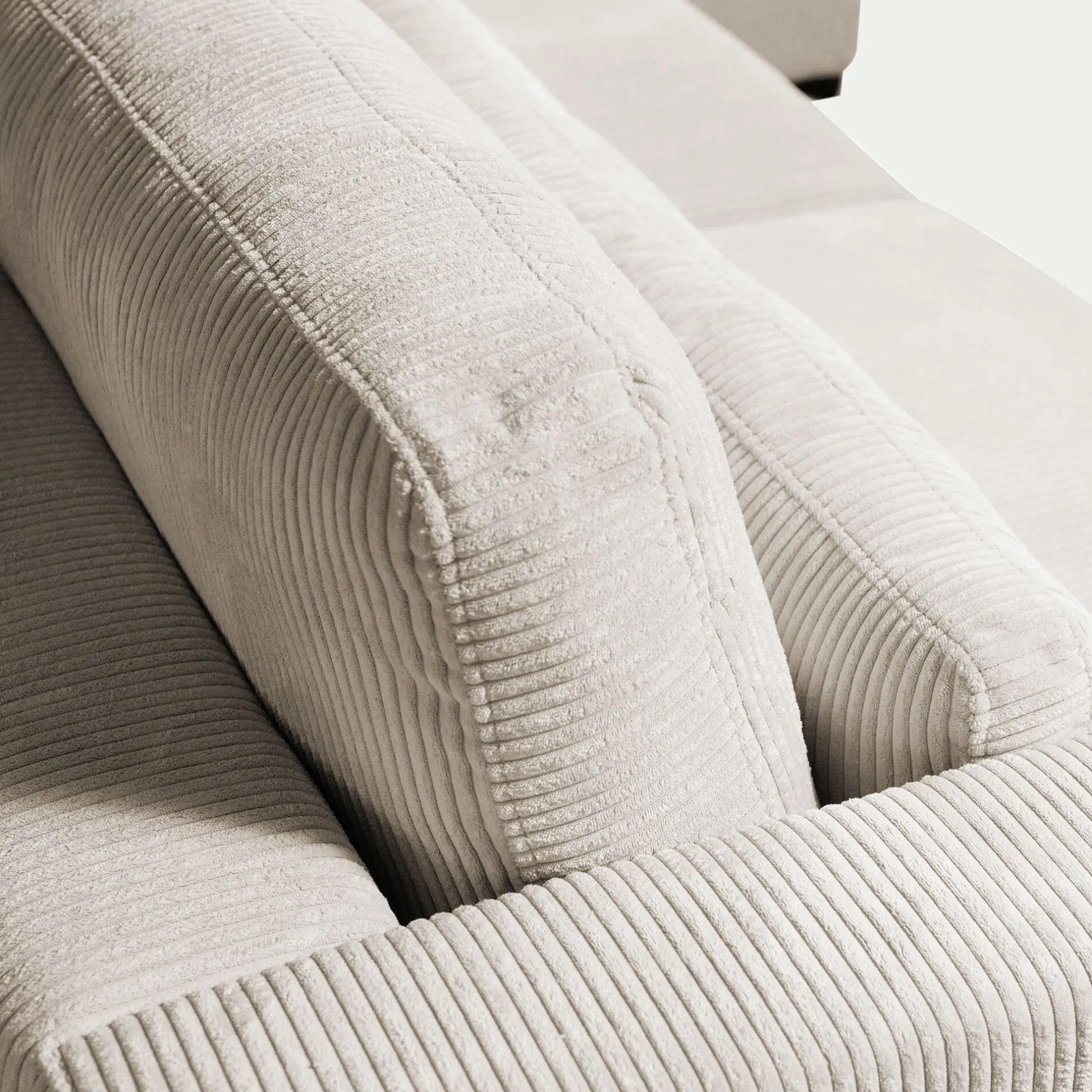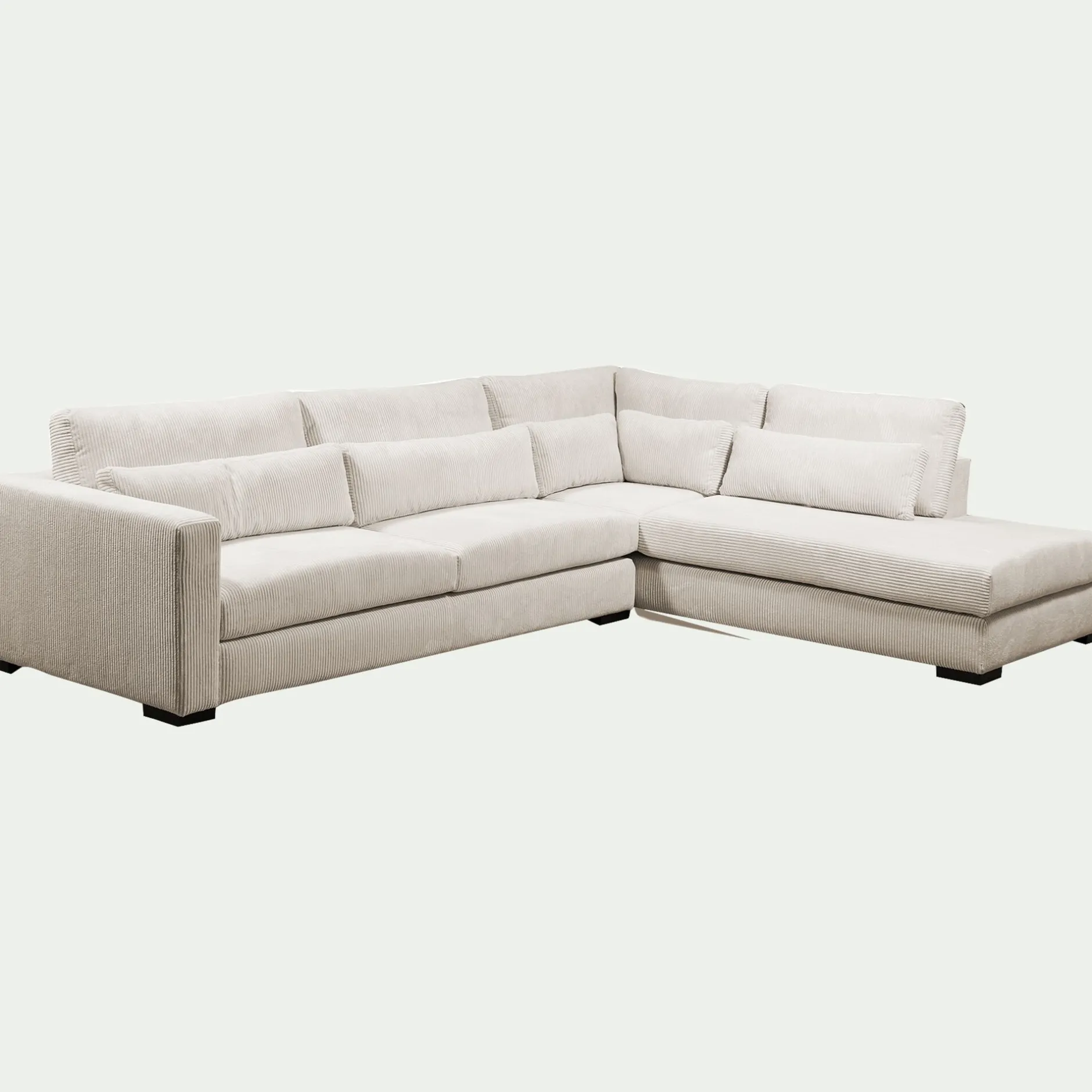 Canapé En Velours|Canapé Fixe*alinea Canapé grand angle droit fixe avec méridienne en velours côtelé Azores – Beige