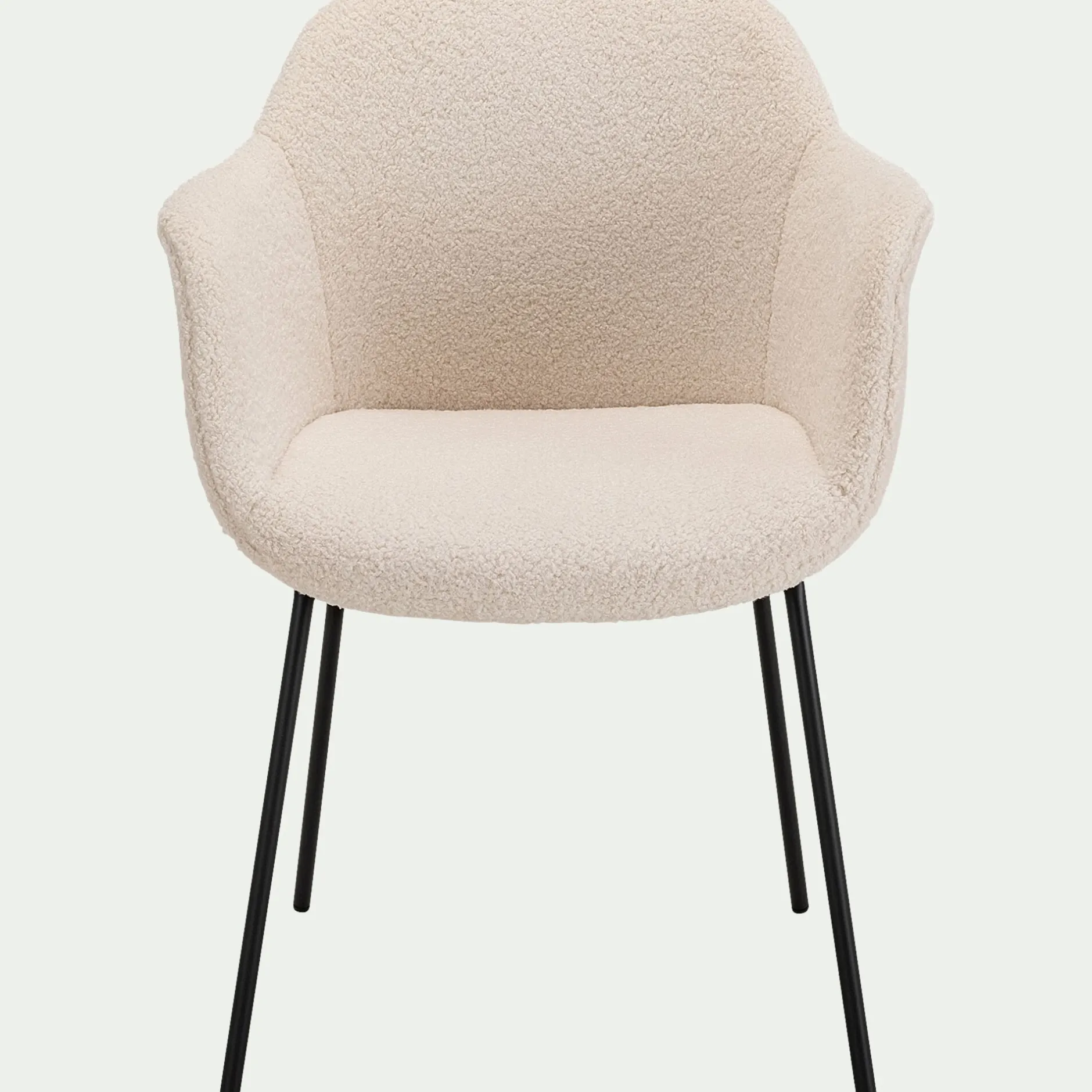 La chaise en tissu Chloe trouvera aisément sa place dans votre salle à manger. Cette chaise de repas se démarque par son style inspiré du fauteuil. On retrouve en effet une assise en mousse, un revêtement en tissu fine bouclette, ainsi que deux accoudoirs. Cette chaise, alliant confort et fonctionnalité, est un meuble design, ainsi qu’un bel élément de déco pour votre intérieur.