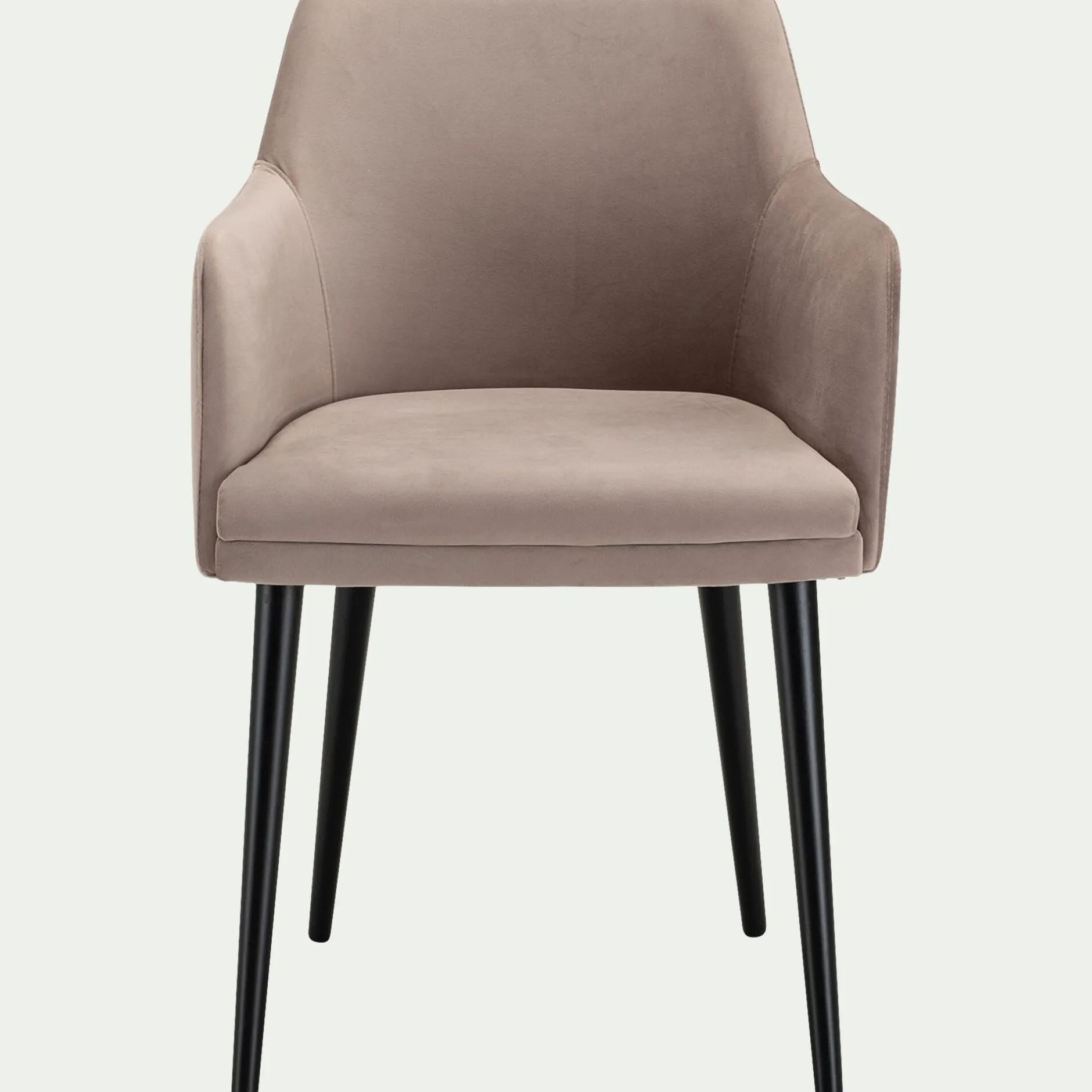 Élégante et intemporelle, cette chaise en tissu effet velours gris s’intègre harmonieusement dans tous les styles d’intérieur. Son coloris sobre et raffiné apporte une touche de modernité et de douceur à votre déco. Confortable et accueillante, elle est parfaite pour partager un repas, lire un livre ou simplement se détendre. Ses accoudoirs enveloppants garantissent un excellent soutien, tandis que son assise en contre-plaqué bois de hêtre certifié FSC ® assure un confort optimal. Son piétement noir renforce son allure contemporaine, en faisant d’elle une pièce essentielle de votre salle à manger. Associez-la à une belle table pour créer un ensemble harmonieux et élégant.