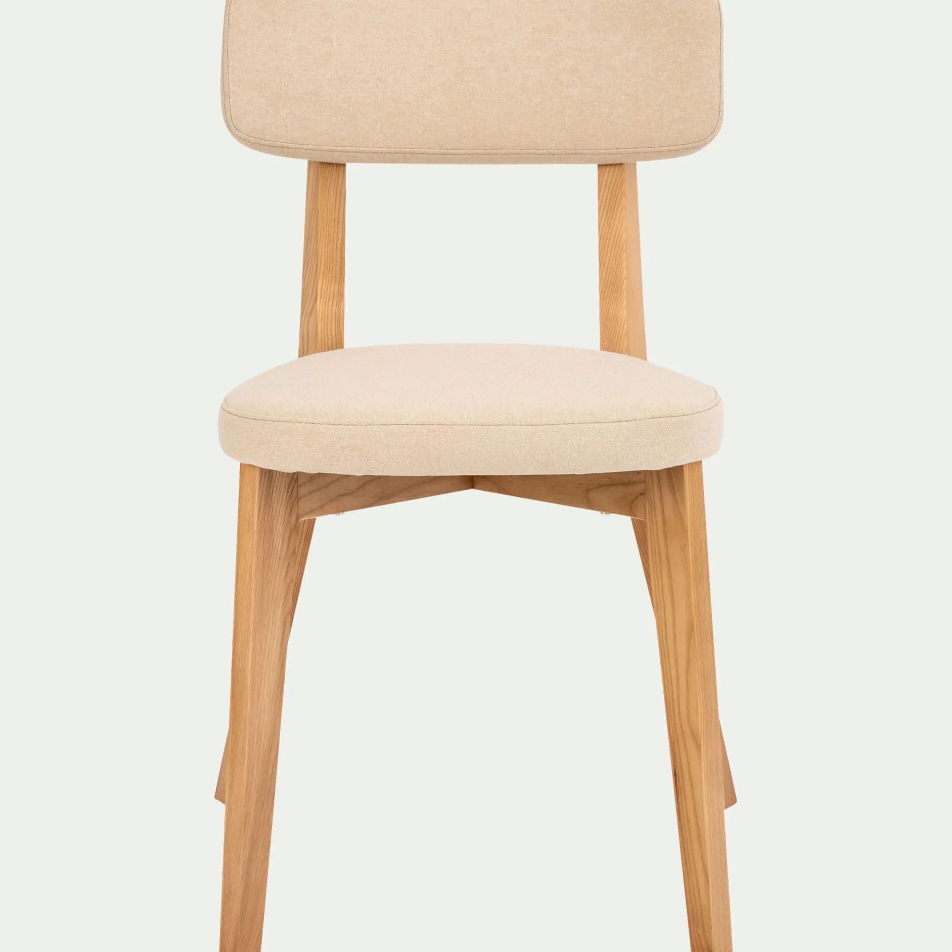 La chaise AMEDEE est une magnifique chaise de salle à manger, grâce à son assise et dossier rembourrés. Très belle association de matériaux avec son tissu blanc nougat et sa structure en bois clair pour cette chaise à l’allure douce et contemporaine. Elle sera parfaite auprès de votre table de salle à manger ou votre bureau pour une ambiance cosy assurée.