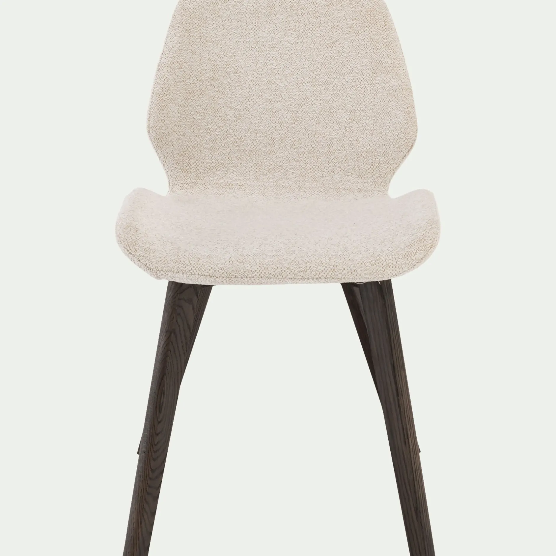 La chaise de repas Afonso, sans accoudoirs, combine élégance et praticité dans un design épuré. Son piètement en noyer massif certifié FSC ®, à la fois robuste et chaleureux, apporte du caractère et met en valeur les veinures naturelles de cette essence noble. L’assise et le dossier, rembourrés de mousse et habillés d’un tissu beige, offrent un confort optimal et un style contemporain. Cette chaise en tissu s’intègre aisément autour de la table, apportant un charme naturel et une touche de modernité à la salle à manger.