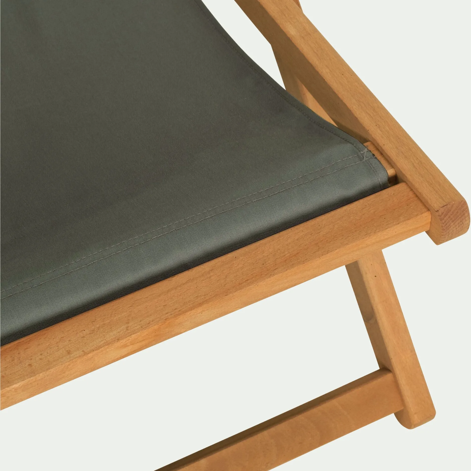 Bois d’hêtre massif certifié FSC avec une finition miel huilée et toile en polyester 230 gr, tissu certifié Oekotex.