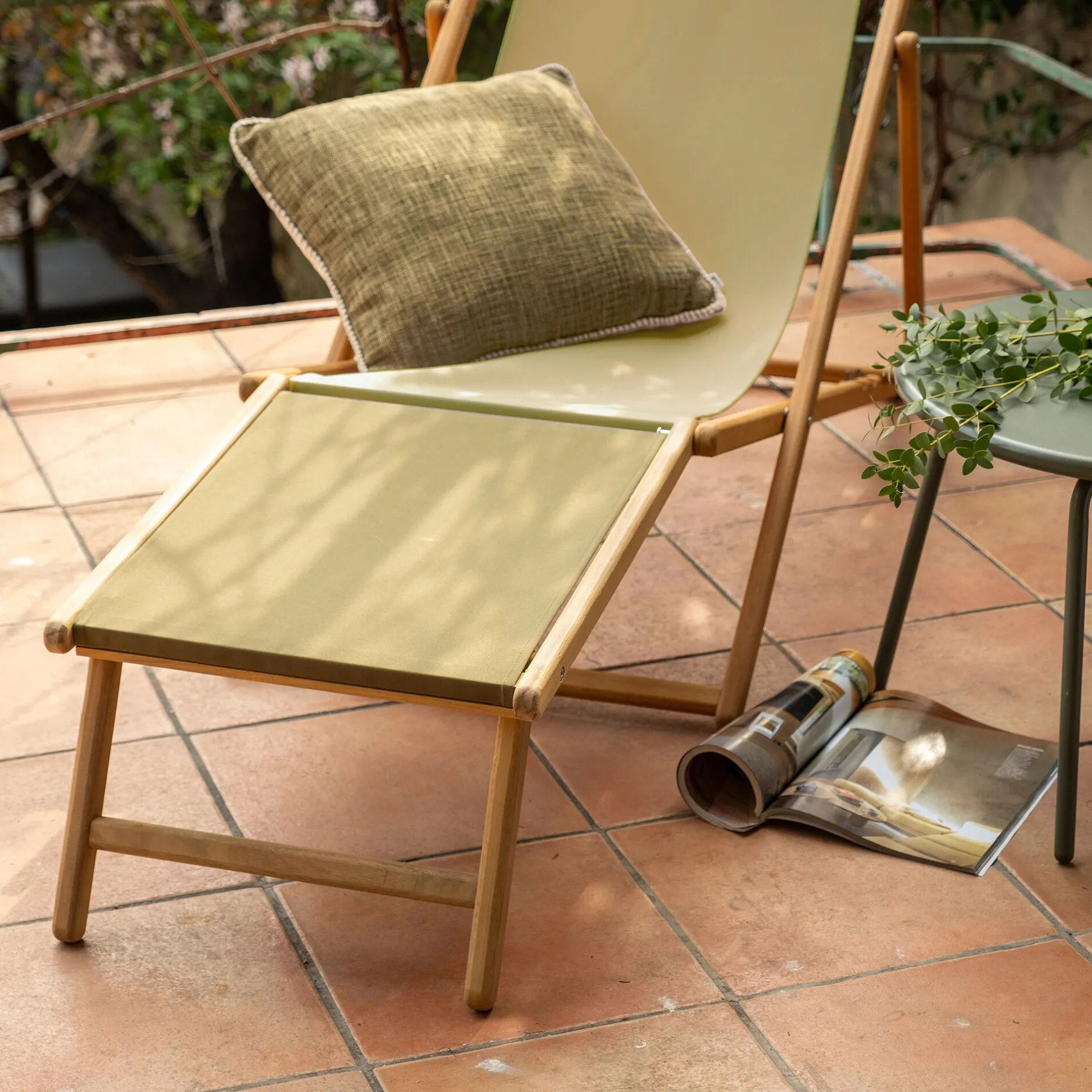 Découvrez ce repose pieds pour vous détendre dans votre jardin. Il s’associe à la chilienne Udina. C’est un accessoire qui vous offre davantage de confort. Le repose pieds vous permet d’être assis tout en ayant les jambes allongées. Un coloris vert tamegroute pour une touche authentique. Cette couleur est inspirée de la ville au Maroc portant le même nom. Amovible, vous pourrez l’ajouter à votre chilienne et l’enlever en toute simplicité. Un élément à la fois déco et utile pour profiter de son extérieur pendant les beaux jours.