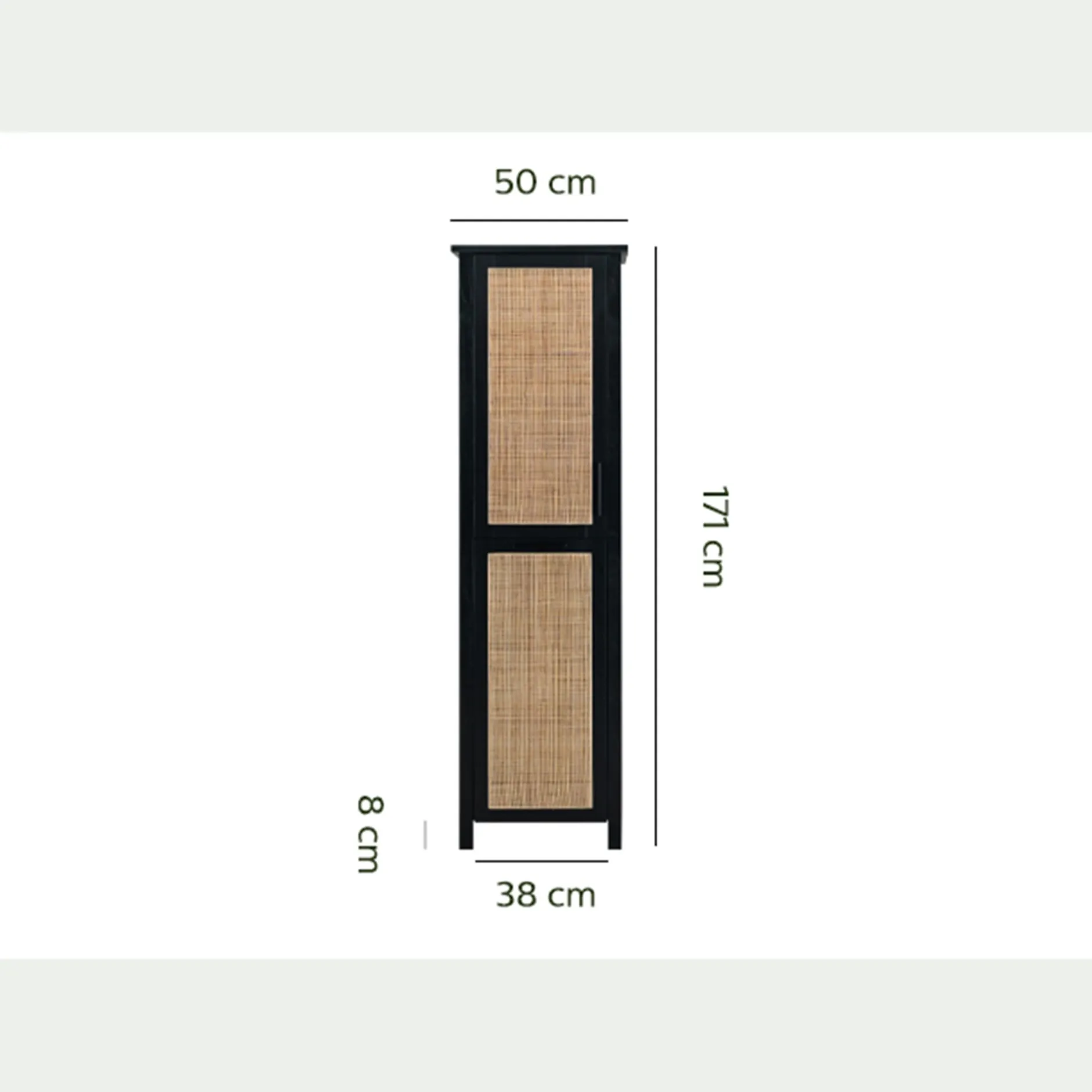 Découvrez ce mobilier de salle de bain au design unique. Cette colonne de rangement en bois de cèdre et cannage arbore un coloris noir, avec une touche de naturel, qui lui donne un style intemporel. Ce meuble de rangement est idéal pour votre linge de toilette et vos accessoires de bain. Découvrez le reste de la gamme et créez une salle de bain authentique et plein de caractère.