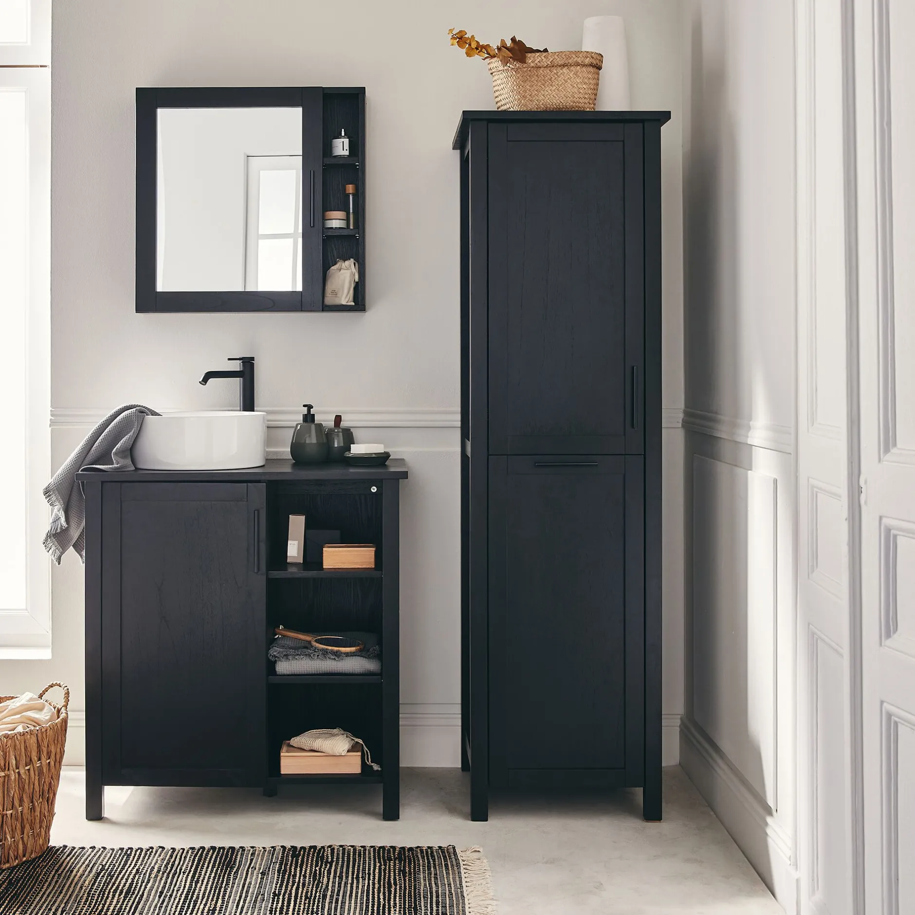 Découvrez ce mobilier de salle de bain au design contemporain. Cette colonne de rangement en bois de cèdre arbore un coloris noir, qui lui donne un style très moderne. Ce meuble de rangement est idéal pour votre linge de toilette et vos accessoires de bain. Découvrez le reste de la gamme et créez une salle de bain authentique et plein de caractère.