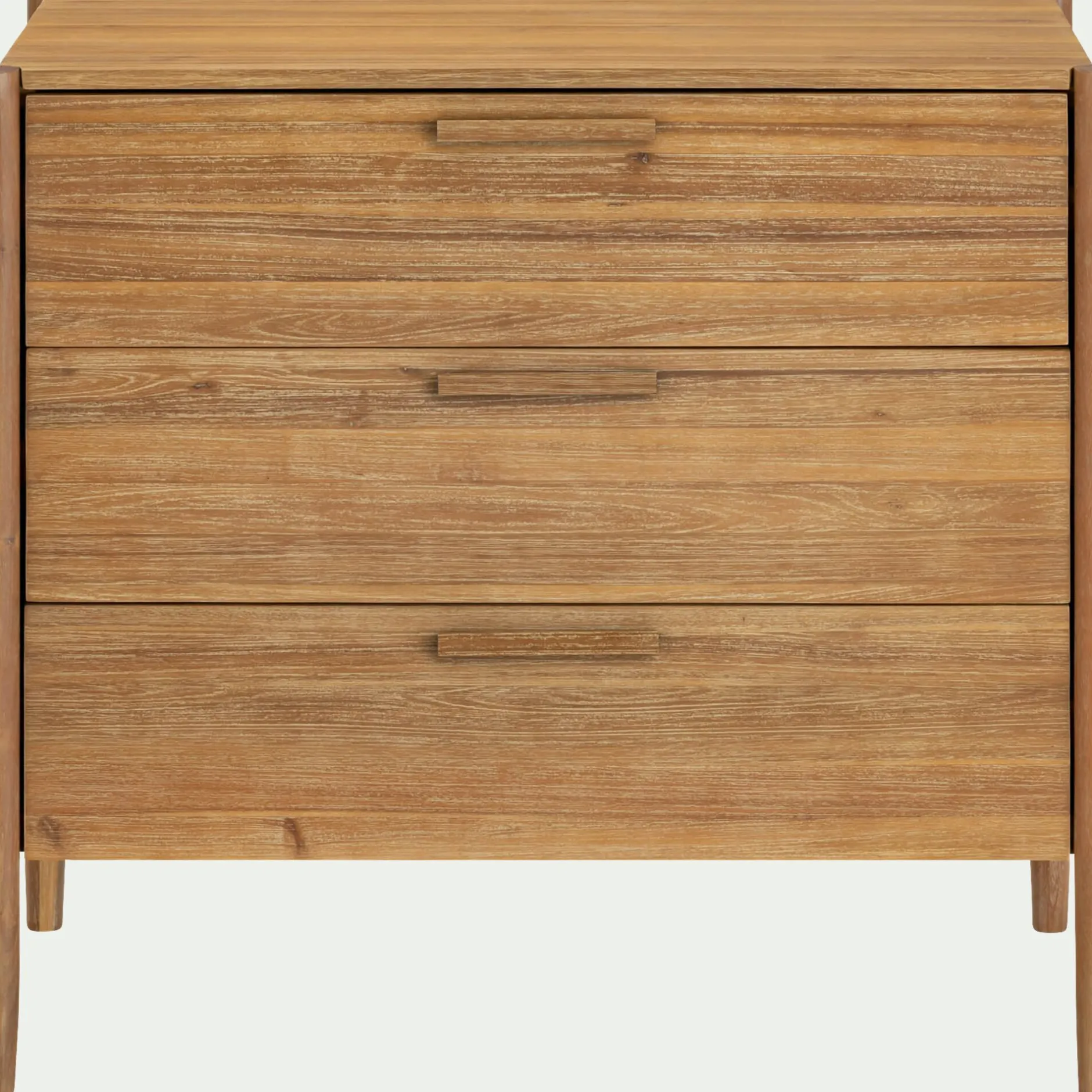 Tiroirs en acacia et contreplaqué.