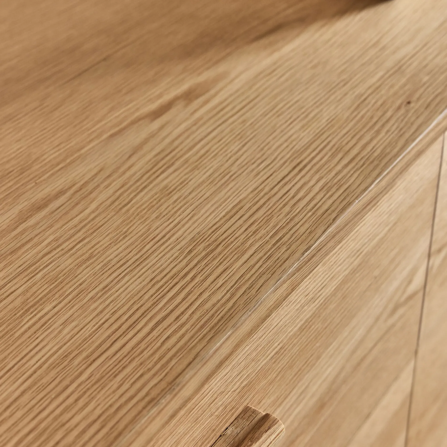 La commode Marietta séduit par son design épuré et fonctionnel. Réalisée en bois clair certifié FSC, elle apporte une touche naturelle et lumineuse à la chambre. Ses six tiroirs spacieux permettent d’organiser vêtements et accessoires avec aisance. Les poignées minimalistes soulignent son style sobre et contemporain, faisant de cette commode un meuble à la fois pratique et élégant.