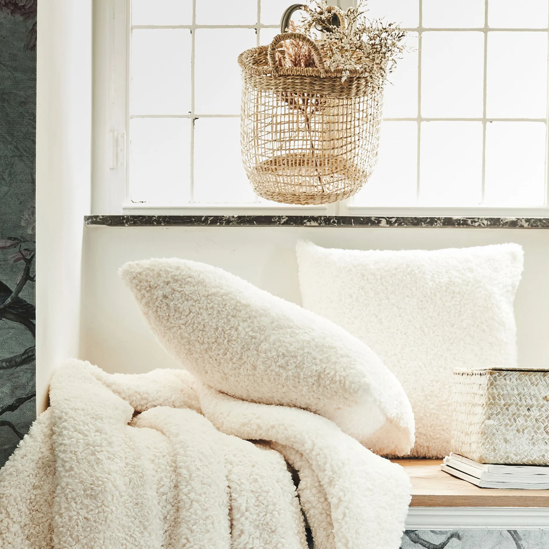 Coussin moutonné blanc