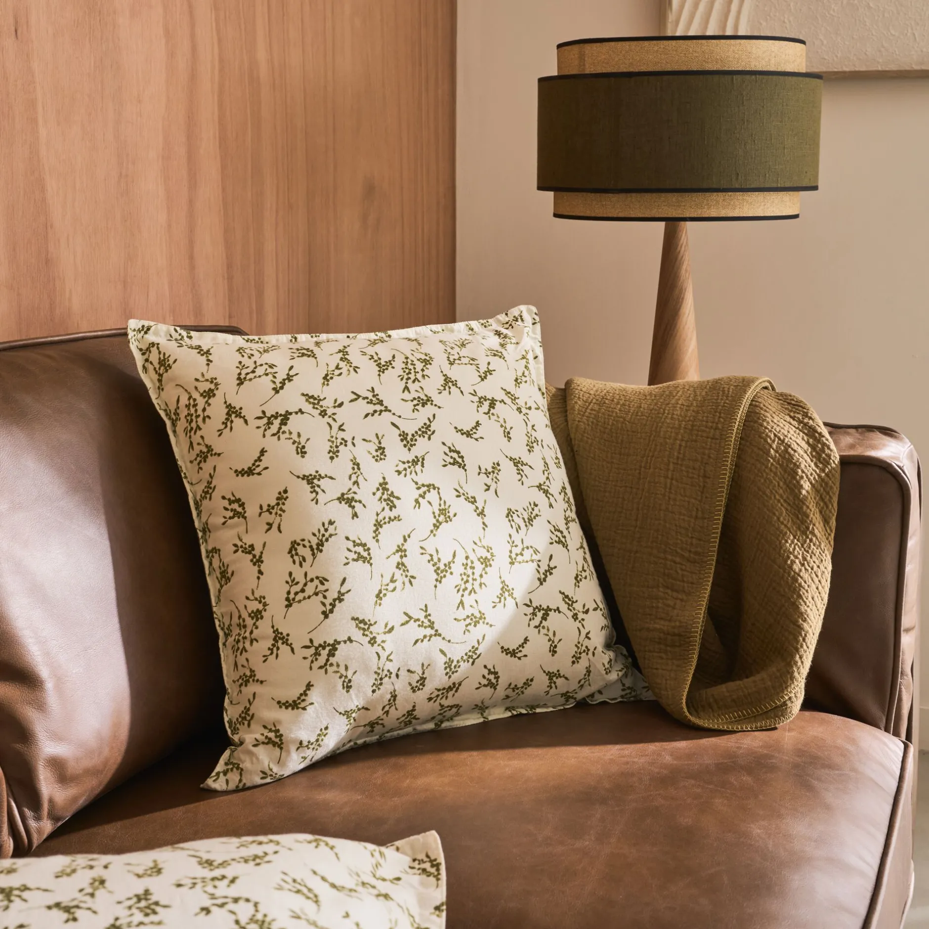 Le vent floral souffle sur la déco de votre intérieur avec ce beau coussin à motif. Fabriqué en coton, son enveloppe déhoussable arbore des couleurs douces qui sentent le soleil. Sa finition surpiqûre lui confère son élégance incontestable et ses motifs à fleurs verts font de lui une décoration distinguée. En 45×45 cm, il s’intègre parfaitement à votre déco de chambre ou de salon. Dans un espace au style naturel, il saura apporter de la profondeur à un canapé ou un fauteuil.