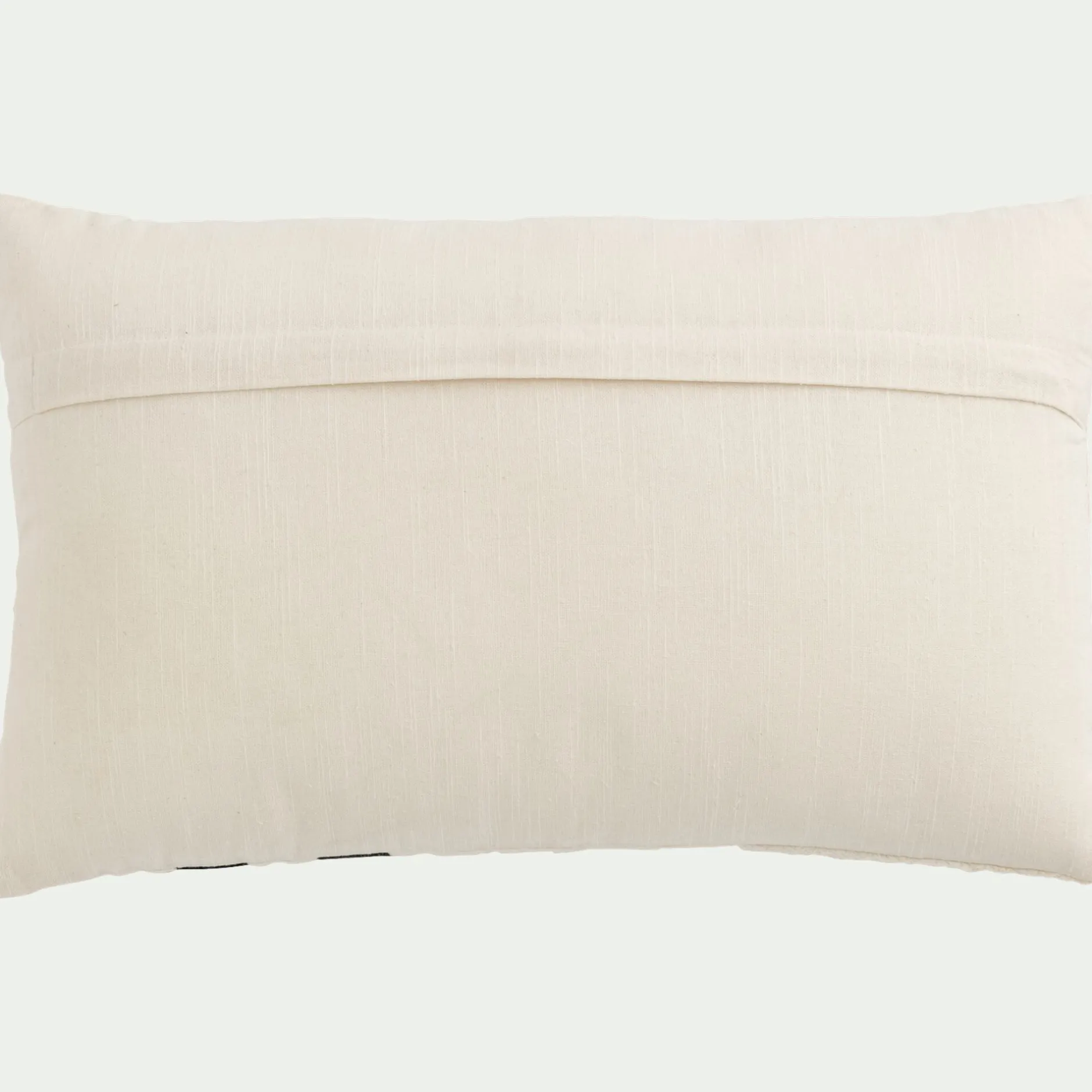 A la fois confortable et décoratif, le coussin Tilva est parfait sur votre canapé. Ce coussin rectangulaire se compose d’une housse 100% coton et d’un garnissage épais adapté. Déhoussable, ce coussin déco se lave aisément en machine. Il arbore une couleur lumineuse et intemporelle : le blanc. Cette tonalité éclatante s’associe à tous les types de décoration. Cette belle housse est ponctuée de deux épaisses rayures noires, un détail simple qui permet de jouer le contraste. Ce coussin rayé présente une finition tuftée sur un angle, un effet moutonné qui apporte de la texture à l’ensemble. Ce coussin à motifs de 30×50 cm vous accompagne lors de vos moments de détente pour un plaisir décuplé.
