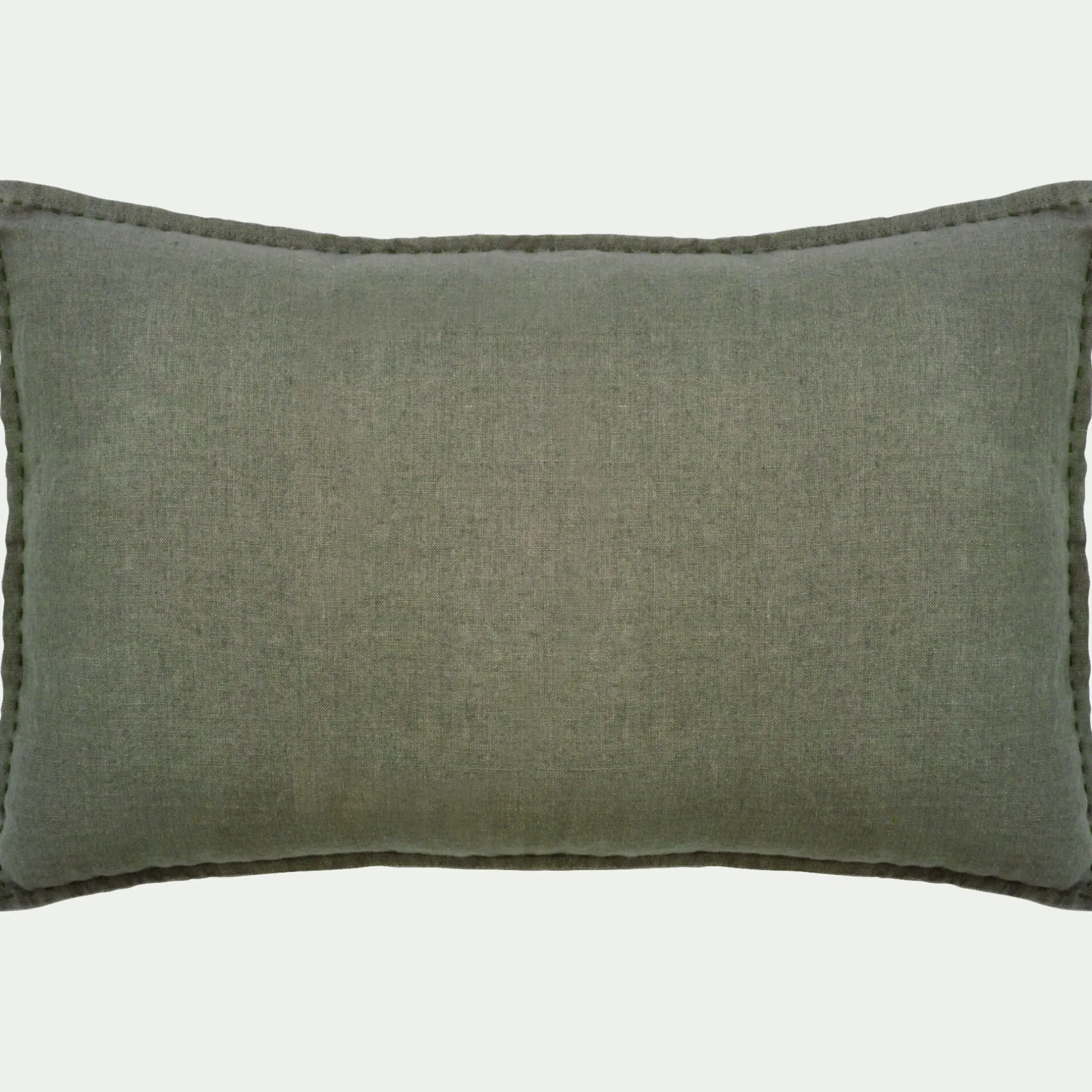 Chaud en hiver et frais en été, le lin lavé sublime votre intérieur tout au long de l’année. Cette fibre végétale très tendance est synonyme d’élégance et de raffinement. L’étoffe intemporelle de ce coussin déco donne à votre décoration une touche naturelle et authentique, parfois même artisanale grâce à sa surpiqûre fait-main. Durable et intemporel, ce coussin de 40×60 cm en lin lavé est un bel atout déco à arborer fièrement dans le canapé ou sur un fauteuil. Dans notre coloris vert cèdre, il trouve sa place avec douceur et simplicité.