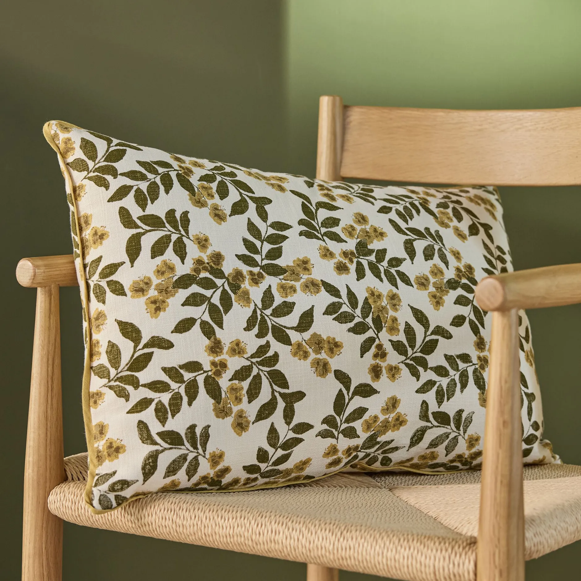 Le coussin Hoa évoque la fraîcheur d’un jardin en fleurs. Sur sa housse en coton blanc s’épanouissent de délicates petites fleurs jaunes et vertes, apportant une note colorée et vivante à la déco. Son format rectangulaire de 40×60 cm est souligné par un élégant volant plat, qui accentue son esprit champêtre et raffiné. Un joli détail pour égayer un canapé ou un lit avec douceur.