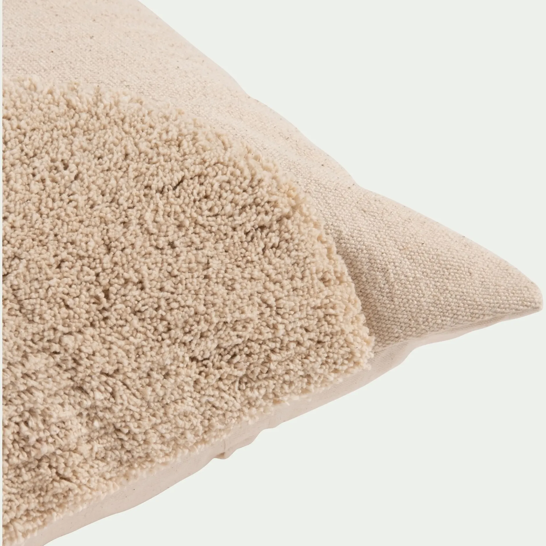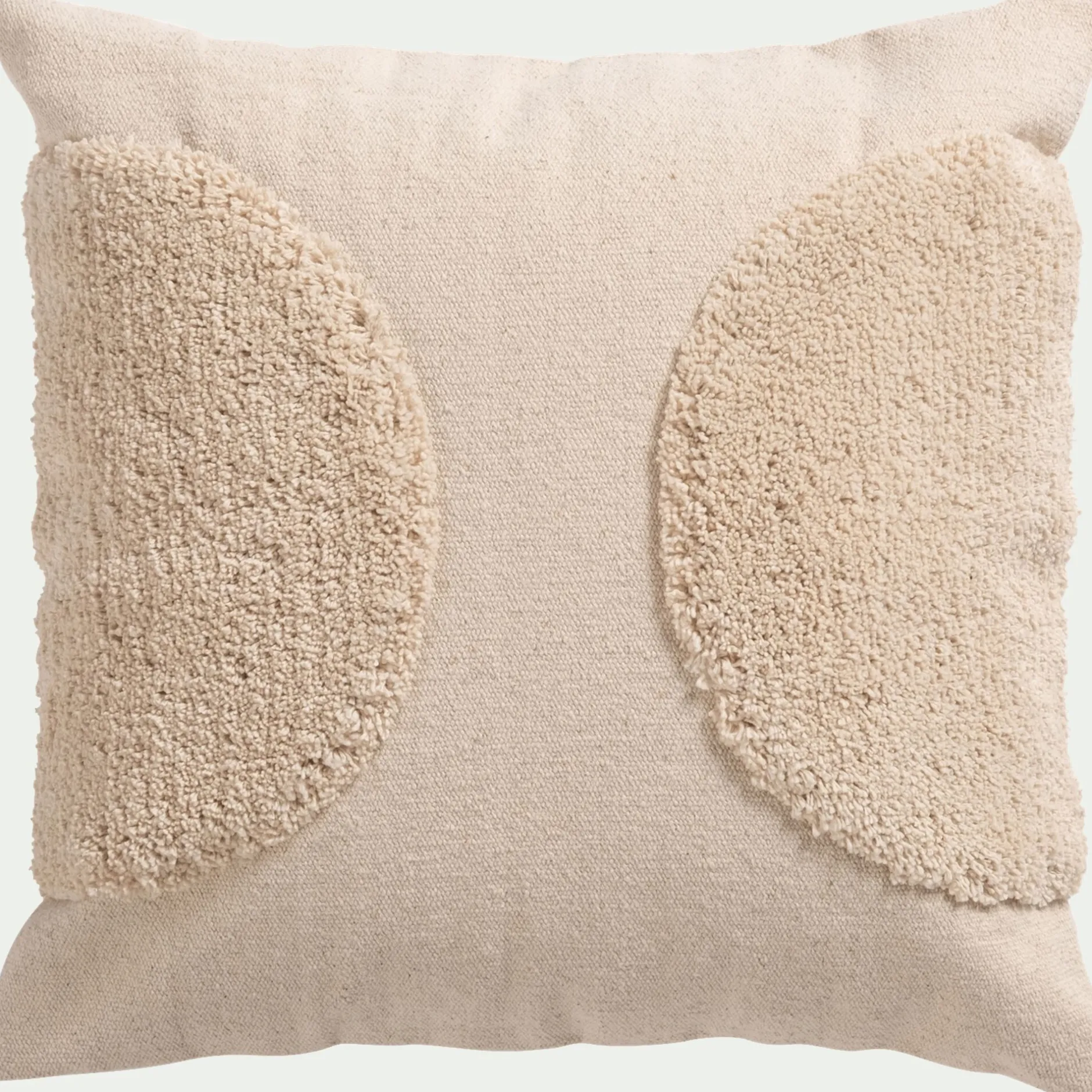 Avec ses demi-lunes laineuses, le coussin d’intérieur Ollia apporte une touche chaleureuse à la décoration. Sur la housse en coton beige, des motifs tuftés ton sur ton. La rondeur des demi-cercles s’allie à la douceur de la texture pour donner vie à ce coussin déco. Ce coussin uni en coton souligne un intérieur monochrome ou apaise une décoration plus colorée. Sur le lit ou sur le canapé, il apporte confort et style.