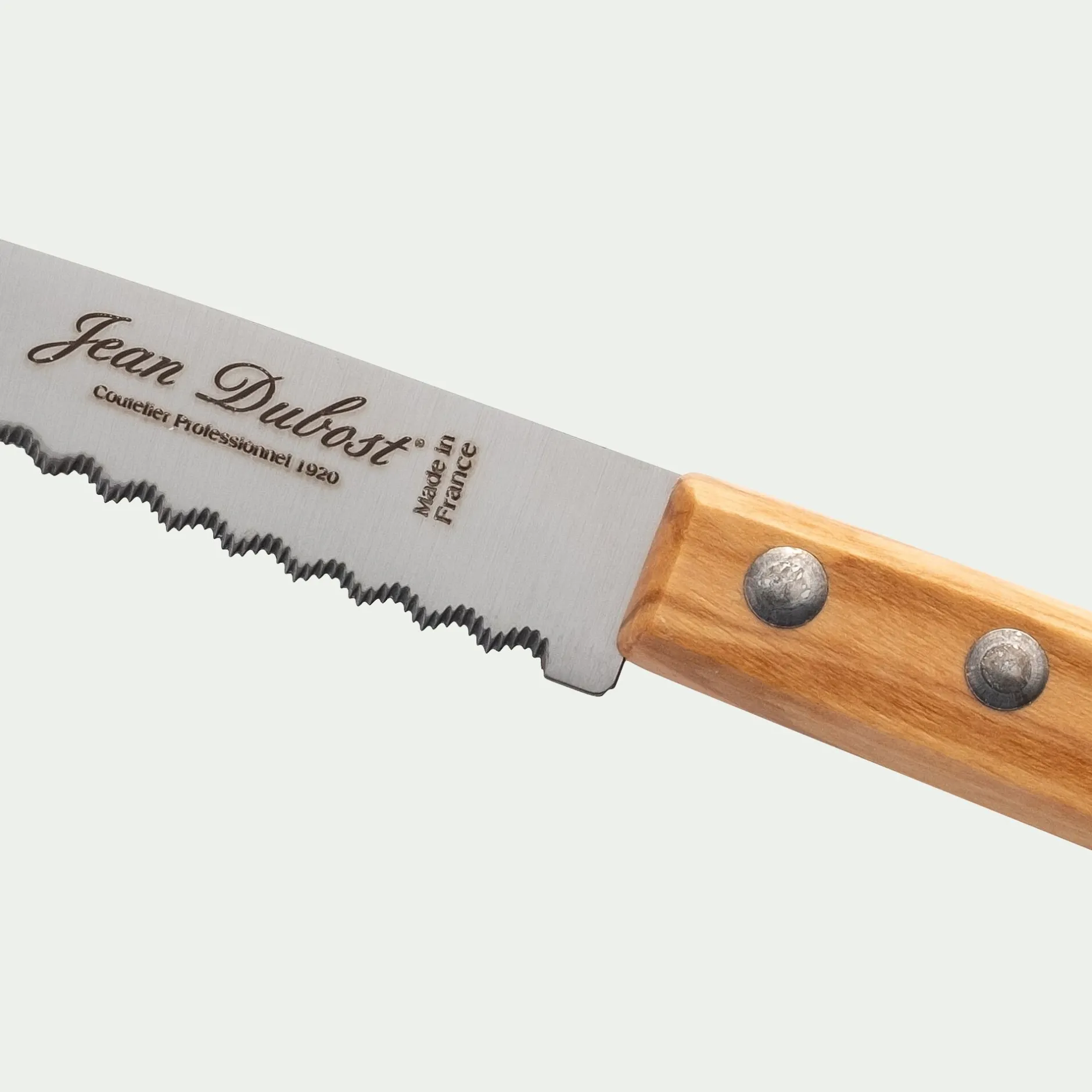 Nettoyez et épluchez différents types de légumes à l’aide de ce couteau à légumes en bois d’olivier. Sa lame micro-dentée s’imprégnera de la chair des légumes pour une découpe lisse et nette. Fabriqué en France, ce couteau à légumes vous offre une qualité hors pair et un design naturel. Découvrez le reste de la gamme qui présente divers sortes de couteau de cuisine.