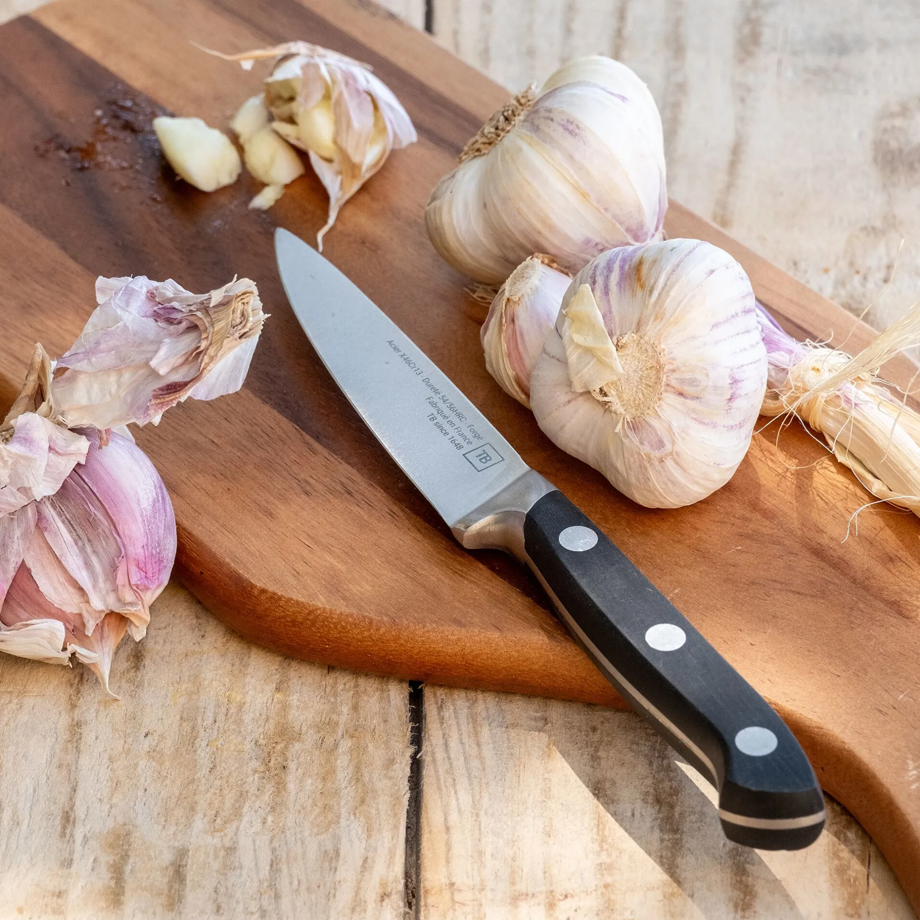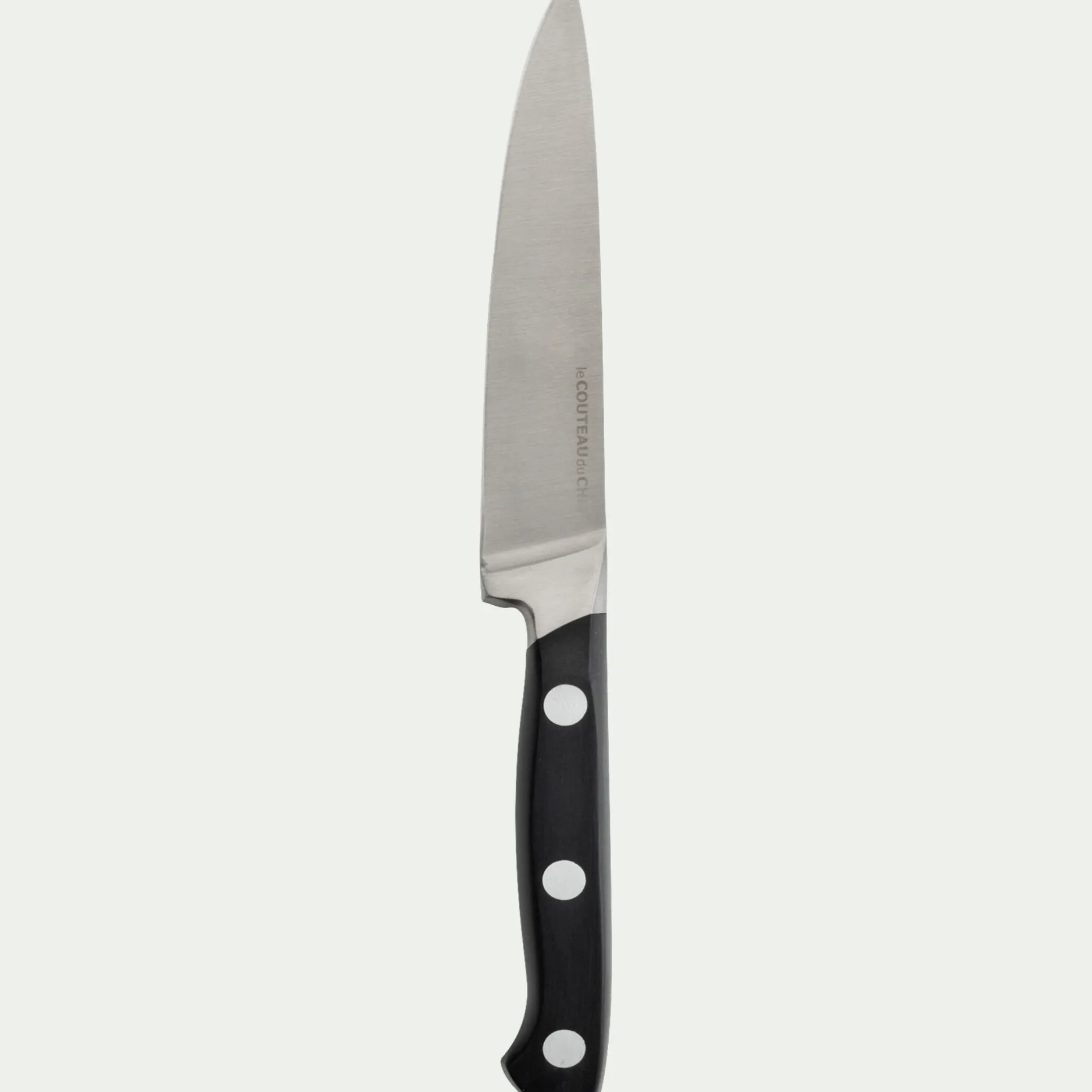 Maite est un couteau d’office en acier forgé. Ce petit couteau particulier est destiné aux découpes de précision. Avec sa lame courte de 9 cm et son bout pointu, cet ustentile de cuisine permet de couper, peler, émincer, ciseler, tailler divers aliments. Polyvalent, ce couteau de cuisine vous accompagne dans les tâches les plus minutieuses. Sa lame en acier enrichie en azote est particulièrement tranchante et résistante. Elle est équipée d’un manche noir léger et maniable. Ce couteau d’office professionnel est un outil indispensable à tout cordon bleu.