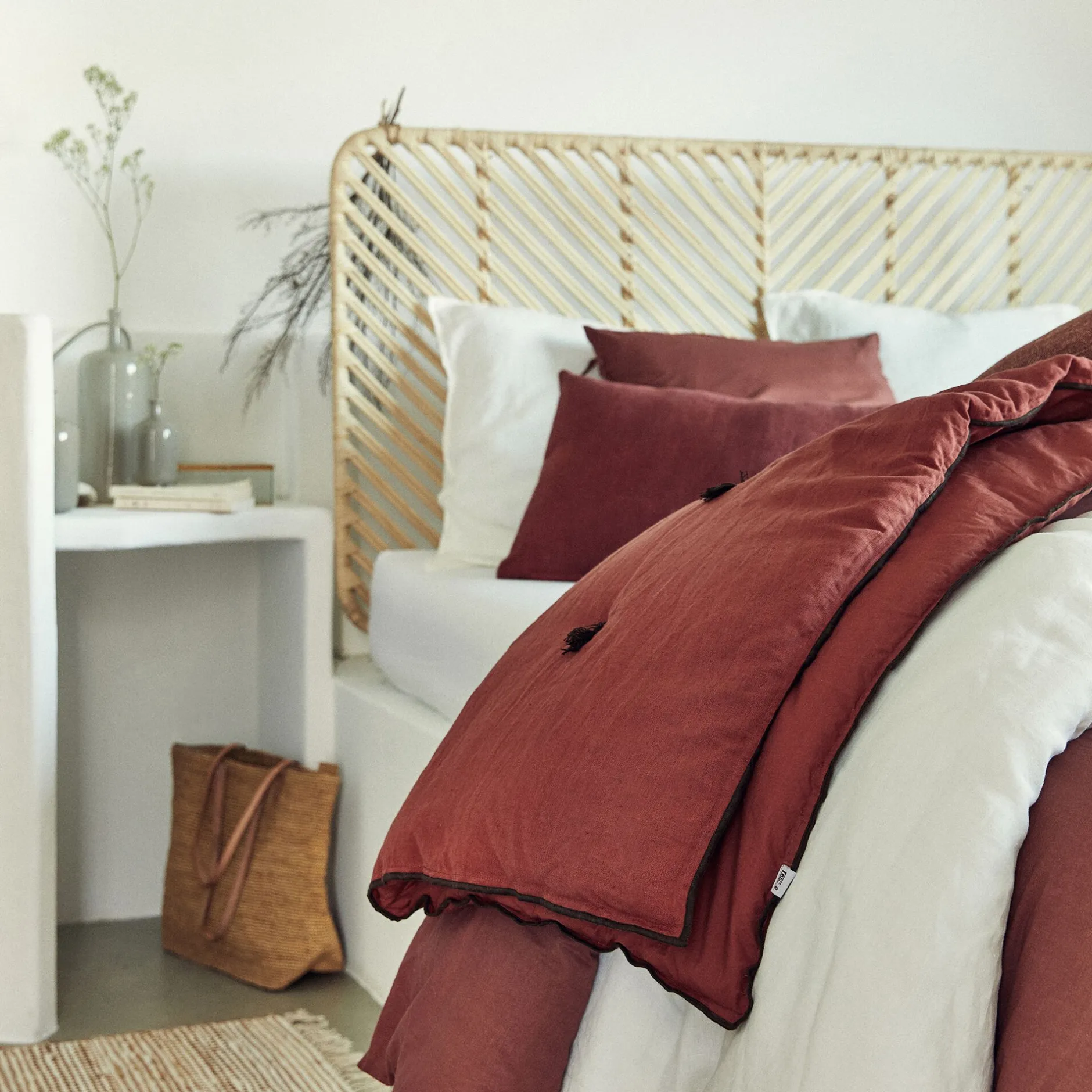 Couvre-Lit*alinea Édredon en lin et coton 100x180cm piquage pompons – arcilla Rouge