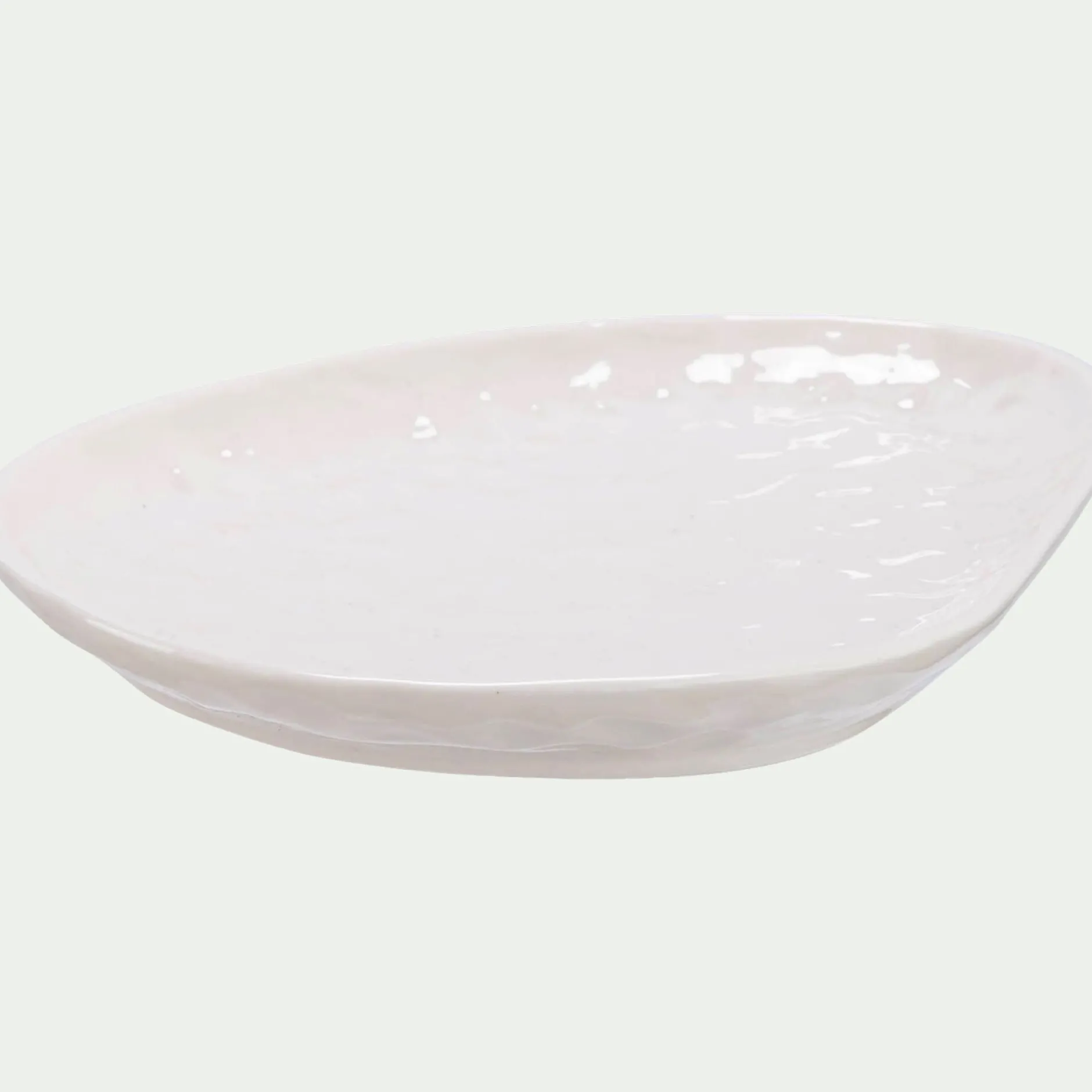 Craquez pour le plateau Rolla, un objet décoratif à la silhouette organique. Ses aspérités lui confèrent un charme imparfait, doux et tendance. En céramique blanche, ce plateau déco crée un point de lumière qui attire le regard. Creux, il peut être utilisé comme vide-poche ou simplement comme objet d’art sur une commode.