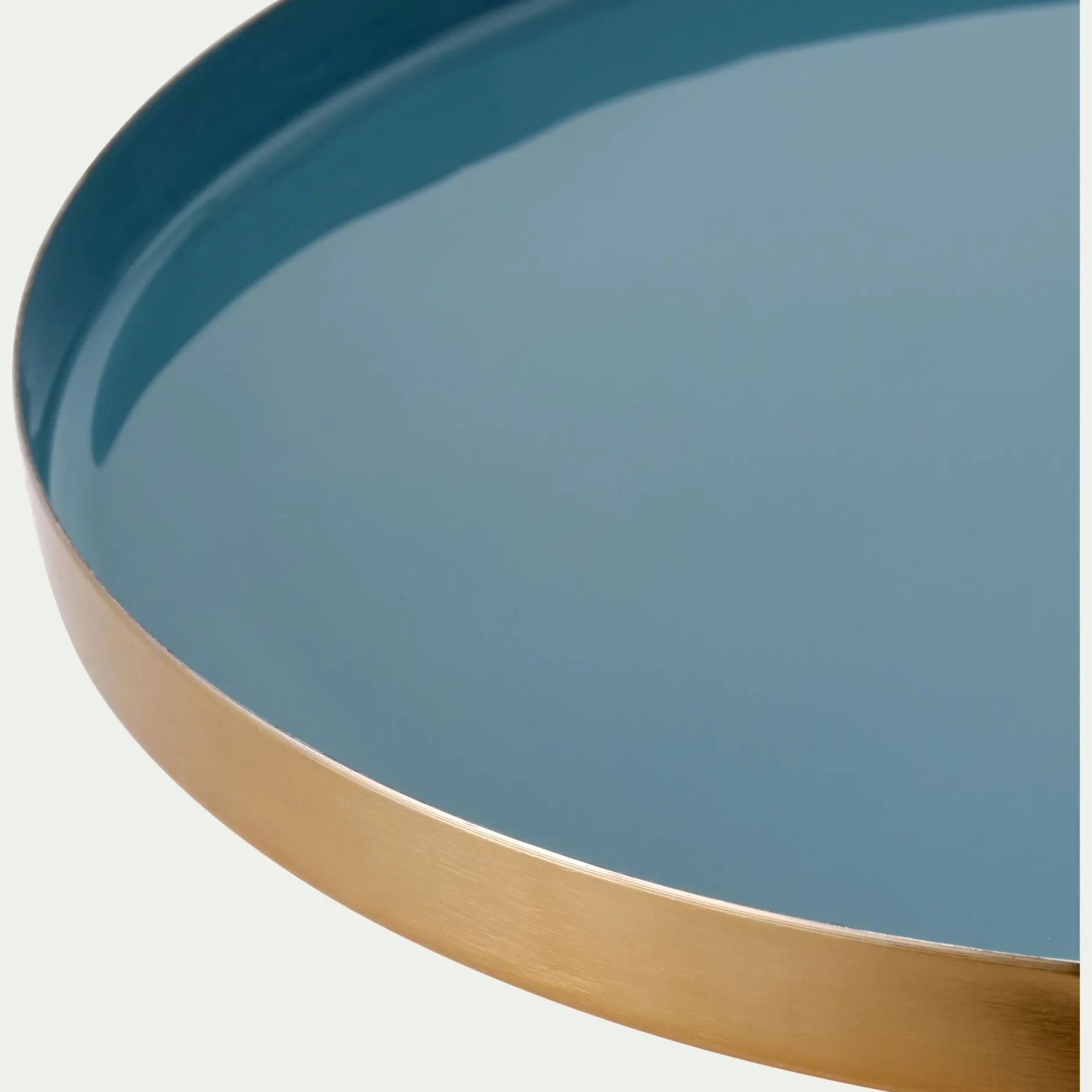 Ce plateau décoratif en fer accueille aussi bien des bougies que quelques bols pour un apéritif convivial avec des amis. Son bleu, souligné par un extérieur aux reflets cuivrés, apporte une touche de couleur élégante à votre intérieur. La déco est travaillée, plus chaleureuse car légèrement teintée d’une nuance orientale.