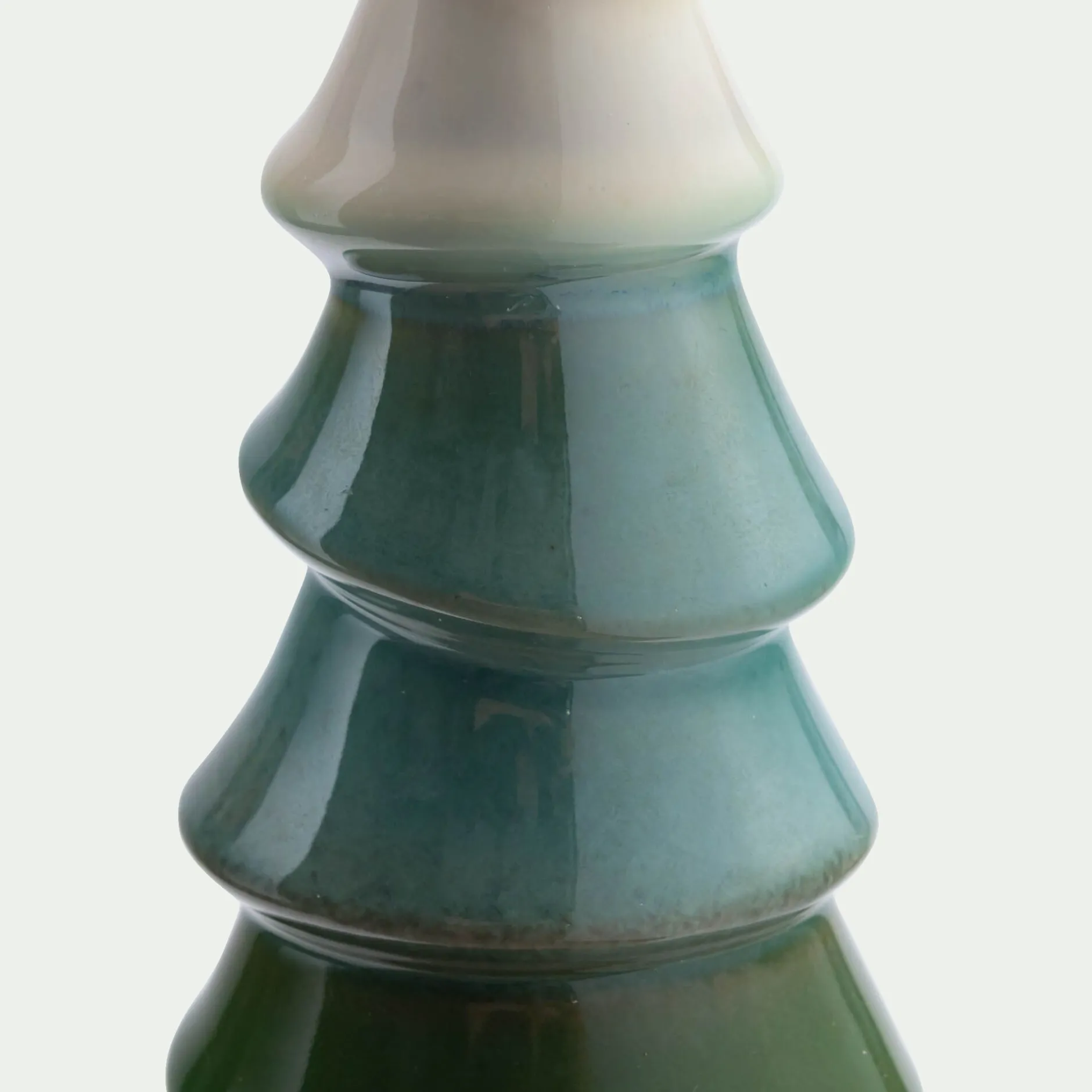 Apportez une touche de poésie à votre décoration de Noël avec ce sapin décoratif en céramique. Son design original et sa forme empilée en trois segments le distinguent des sapins traditionnels. Ses nuances de vert et sa finition émaillée lui confèrent un style à la fois naturel et moderne. Il trouvera sa place sur une étagère, une console, ou au centre de votre table de fête, pour créer une ambiance élégante et festive. C’est l’objet déco idéal pour une décoration de Noël entre modernité et tradition.