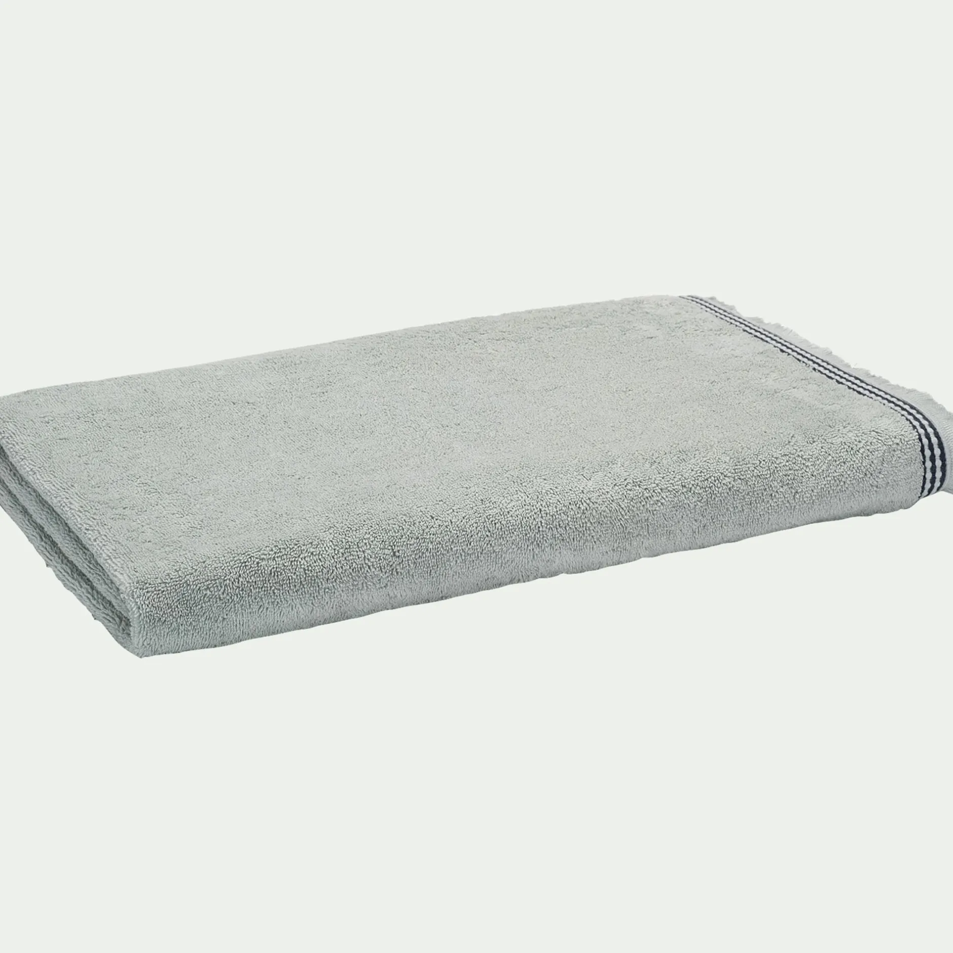 Le drap de bain Amandine, en coton absorbant de 600g, enveloppe la peau d’une douceur réconfortante. Son coloris bleu littoral insuffle un vent méditerranéen à la salle de bain, tandis que son liteau bleu et ses fines franges ajoutent une touche d’élégance. Fabriquée au Portugal, cette grande serviette de 100×150 cm allie raffinement et qualité durable pour des instants de bien-être au quotidien.