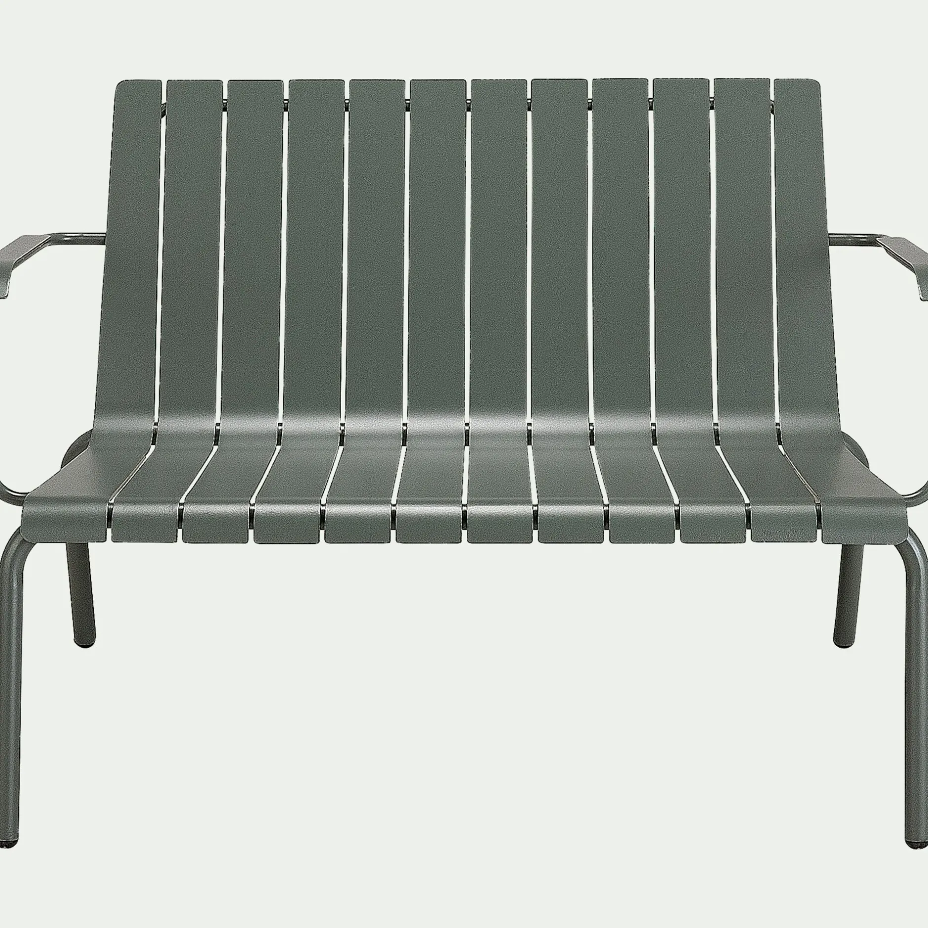 Misez sur la simplicité contemporaine avec ce canapé de jardin en aluminium pour votre espace détente. Son coloris naturel vert cèdre s’harmonisera parfaitement avec votre coin de verdure. Partagez ce canapé à deux et associez-le au fauteuil de jardin de la même gamme afin de chiller en plein air à plusieurs.