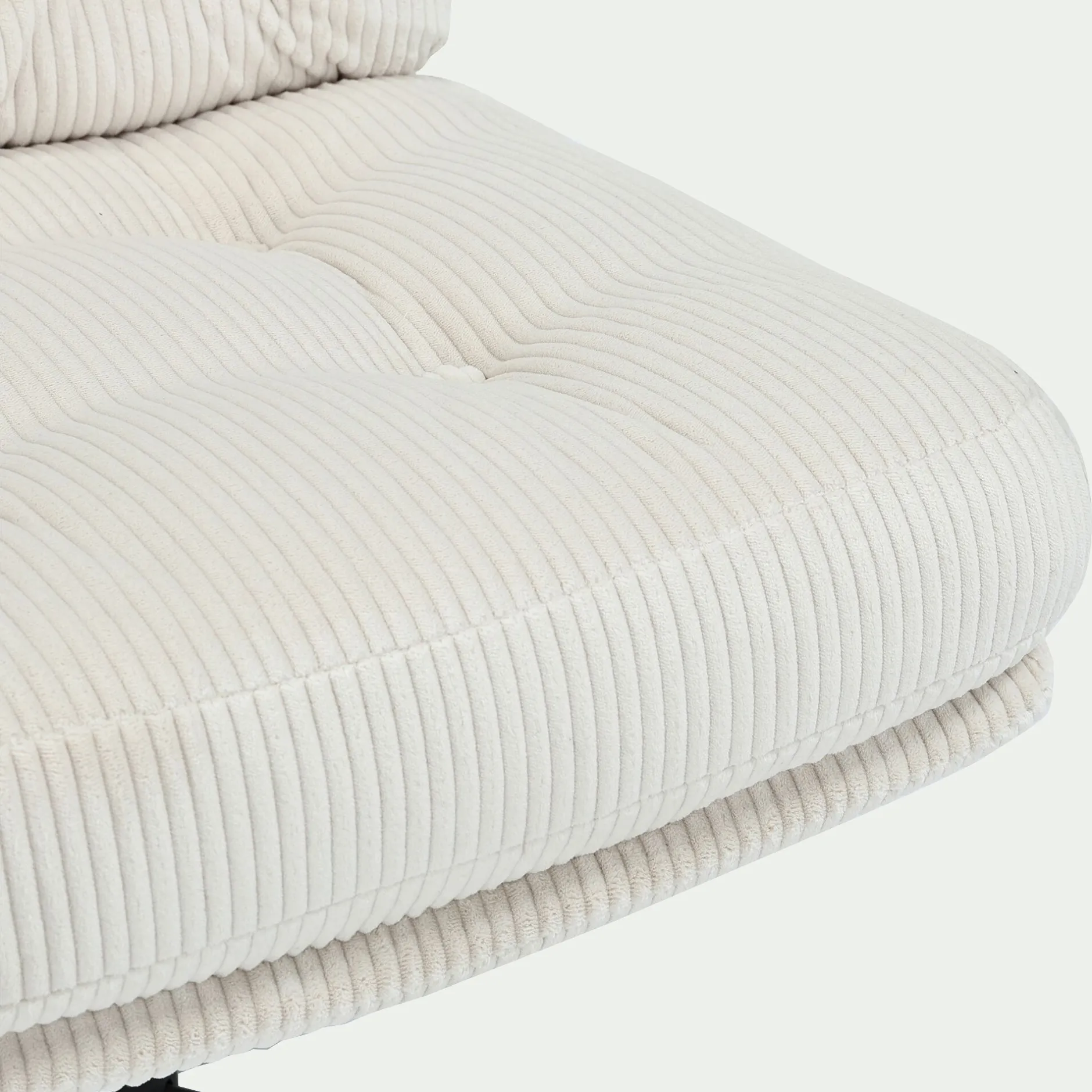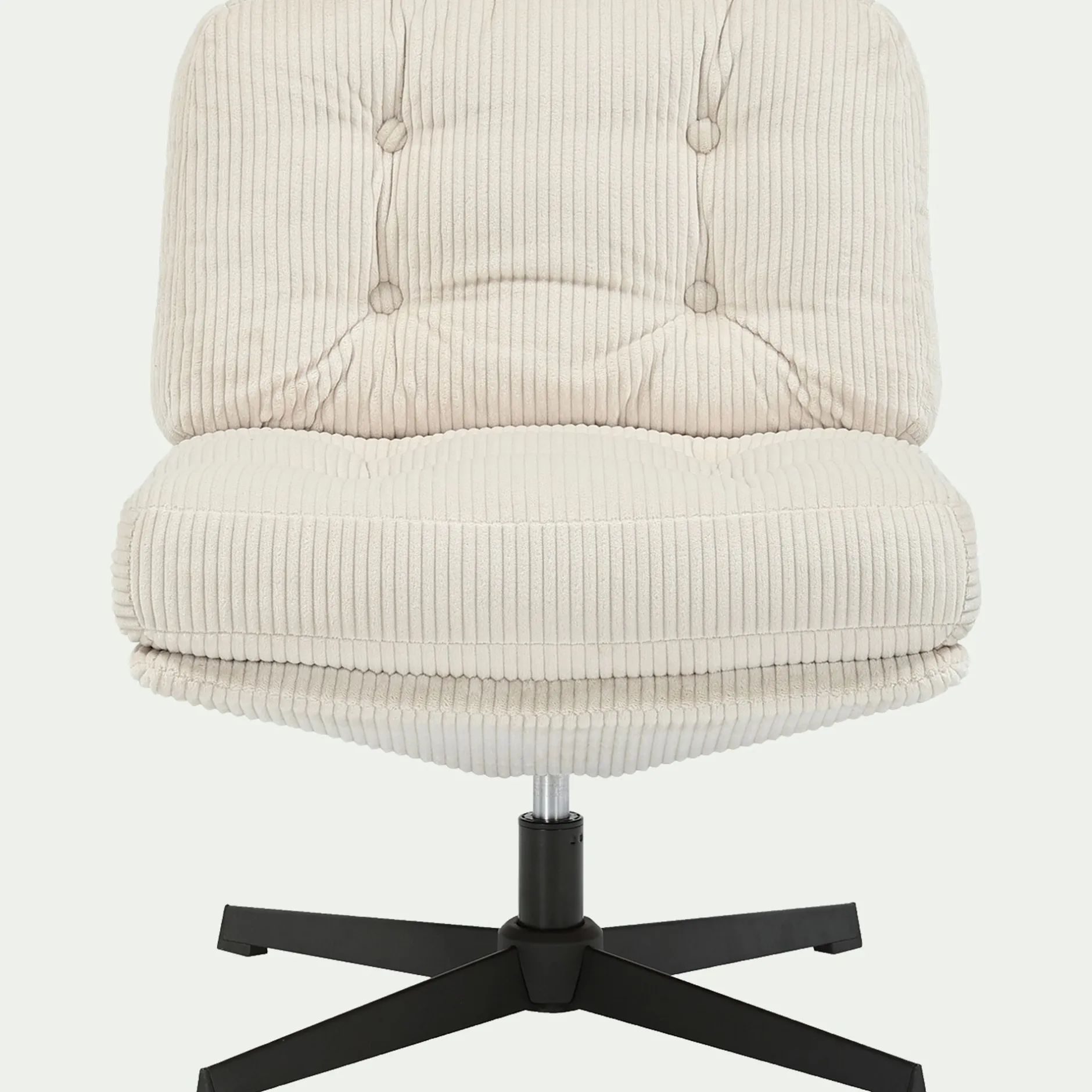 Cette chaise de bureau pivotante réinvente le genre avec son style audacieux et contemporain. Son design aux lignes ultra-modernes et organiques apporte une touche de sophistication à votre espace de travail. L’alliance du velours côtelé beige et d’un piètement en fer noir confère à ce siège un look résolument original et élégant. Inspirée des codes du design rétro, cette chaise offre une assise d’un grand confort. Son dossier ergonomique épouse parfaitement les formes du corps, garantissant un soutien idéal tout au long de la journée.