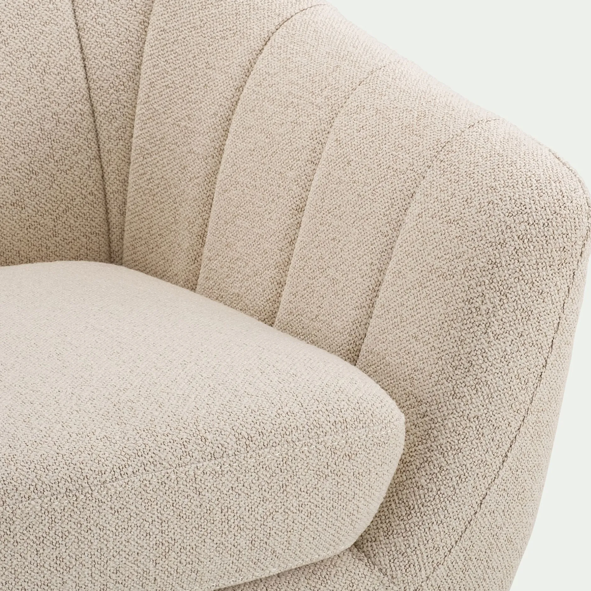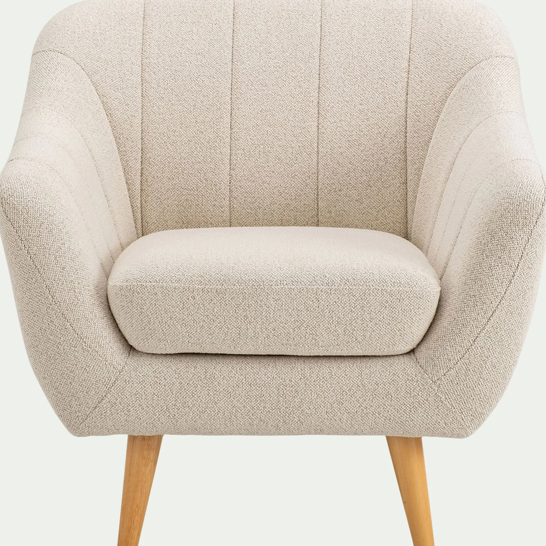 Créez une ambiance vintage avec ce fauteuil en tissu beige. Avec son assise moelleuse et son dossier matelassé, il offre un excellent confort d’assise. Son coloris beige adoucit votre décoration d’intérieur et apporte une note lumineuse à l’ensemble. Ce fauteuil beige est souligné par un piètement en hévéa, une essence de bois claire qui couronne le tout d’une touche chaleureuse. Résolument rétro, le design de ce fauteuil s’inspire d’une coquille Saint-Jacques. Découvrez le reste de la gamme Shell qui se compose de canapés, de poufs et de chaises pour vous offrir un bel ensemble qui saura mettre en valeur votre pièce de vie.