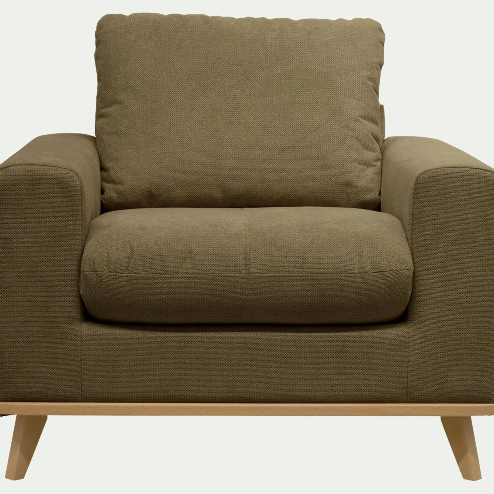 Le fauteuil Capia impose sa présence avec allure et générosité. Ses larges accoudoirs et son assise accueillante en font un véritable cocon de confort, idéal pour se détendre ou partager un moment convivial. Revêtu du tissu crown, une matière synthétique résistante et facile d’entretien, il se pare d’un coloris vert cèdre au charme contemporain. Fabriqué en France avec soin, il allie robustesse et confort au quotidien. Son dossier déhoussable facilite l’entretien, tandis que son piètement en bois clair apporte une note chaleureuse et naturelle qui contraste élégamment avec son revêtement. Une pièce de caractère qui meuble l’espace avec style et fonctionnalité.
