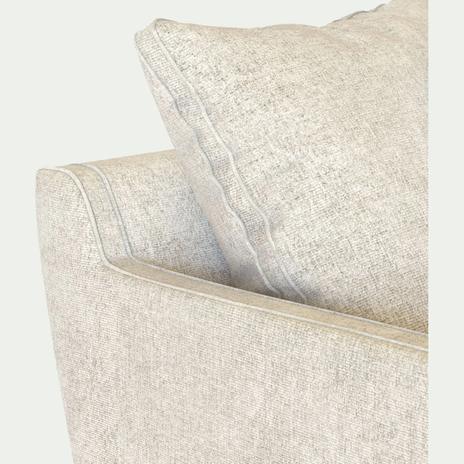 Assise et dossier : Assise en mousse polyuréthane densité 30kg/m3 et couette en fibre polyester. Coussin dossier garnissage plumes d’oies et fibres polyester.