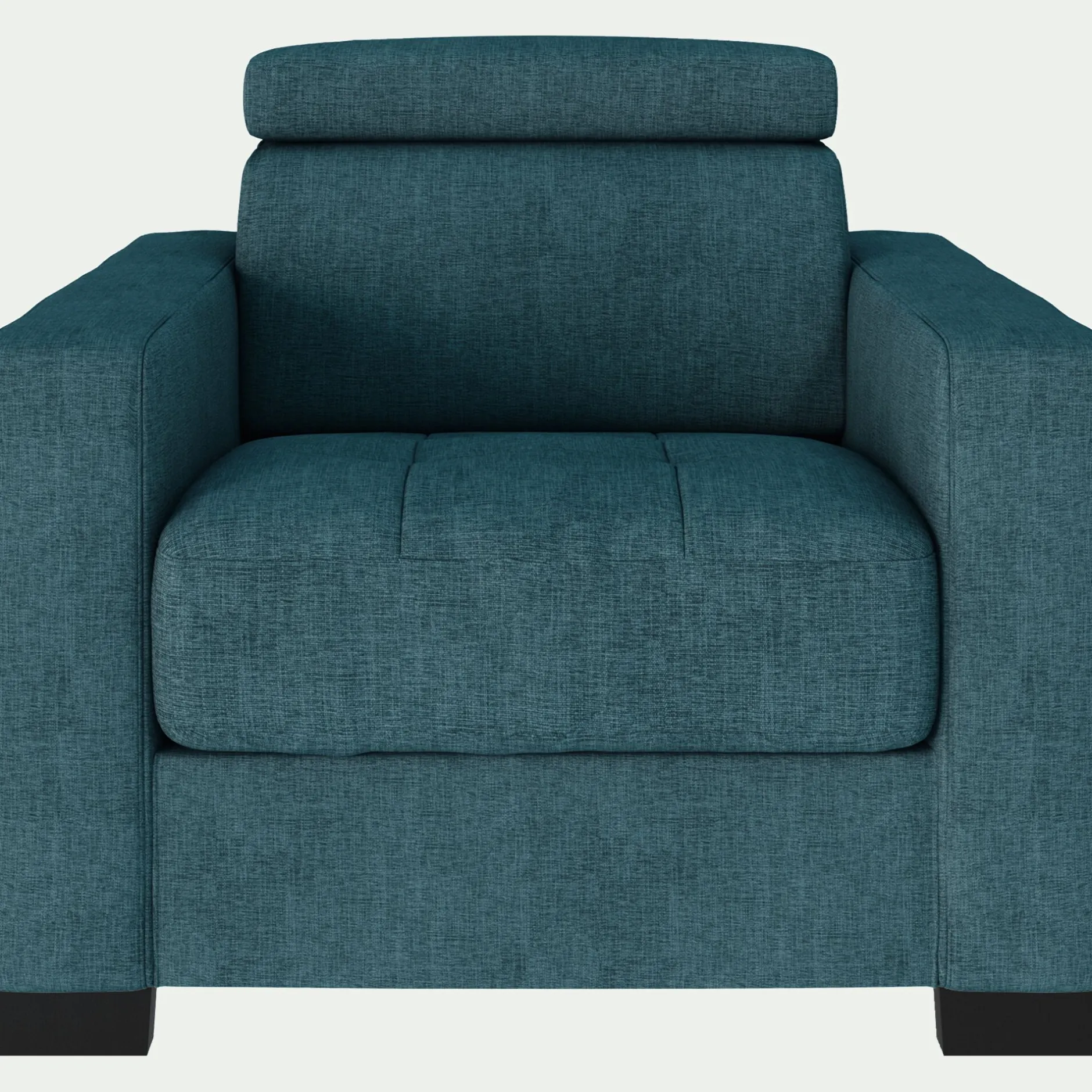 Alliant confort et élégance, ce fauteuil invite au repos avec son assise accueillante. Sa têtière réglable et ses larges accoudoirs assurent un soutien parfait, idéal pour savourer un moment de détente. Son revêtement en tissu bleu niolon s’inspire des belles calanques du Sud de la France. Porté par une structure et un piètement en bois massif certifié FSC, ce fauteuil en tissu séduit par son allure avenante et sa fabrication italienne. Un fauteuil à l’élégance naturelle, pensé pour conjuguer bien-être et style.