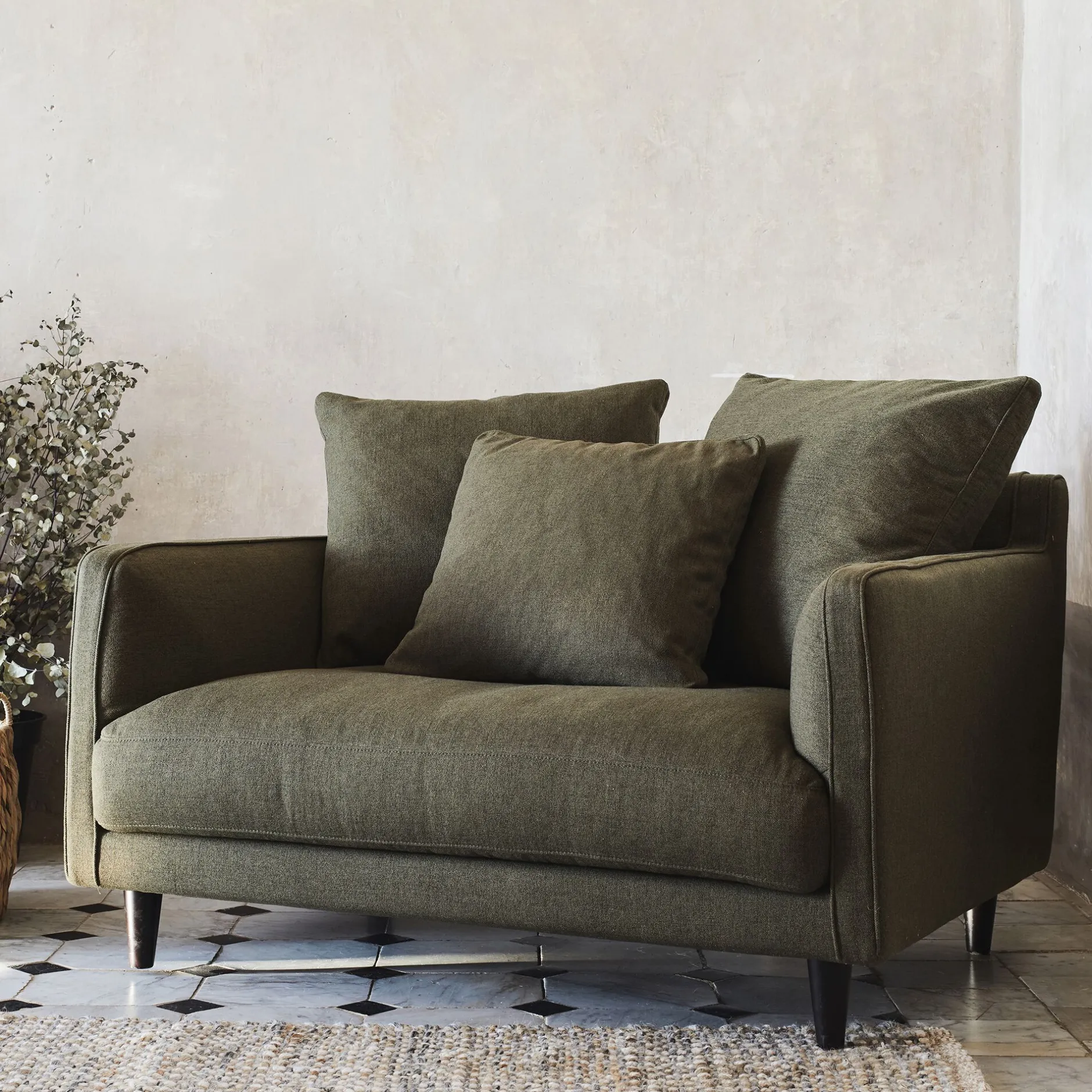 Fabriqué à la main par des artisans italiens avec une tradition ancestrale dans le domaine du siège et de la tapisserie, ce petit canapé en tissu vert kaki saura séduire les amateurs de décoration. LENITA est une remarquable réinterprétation moderne d’un canapé, inspiré de l’époque somptueuse du Second Empire. Installez-vous confortablement dans cet élégant canapé au moelleux immédiatement perceptible garni de plumes d’oie et détendez-vous. Ses lignes, ses courbes, la préciosité de la matière résistante et au touché doux inspirent le raffinement. Les multiples coussins repositionnables vous donneront le juste confort à tout moment de la journée. Son assise profonde et généreuse invite à la paresse. Il sera incontestablement la pièce maitresse de votre pièce de vie.