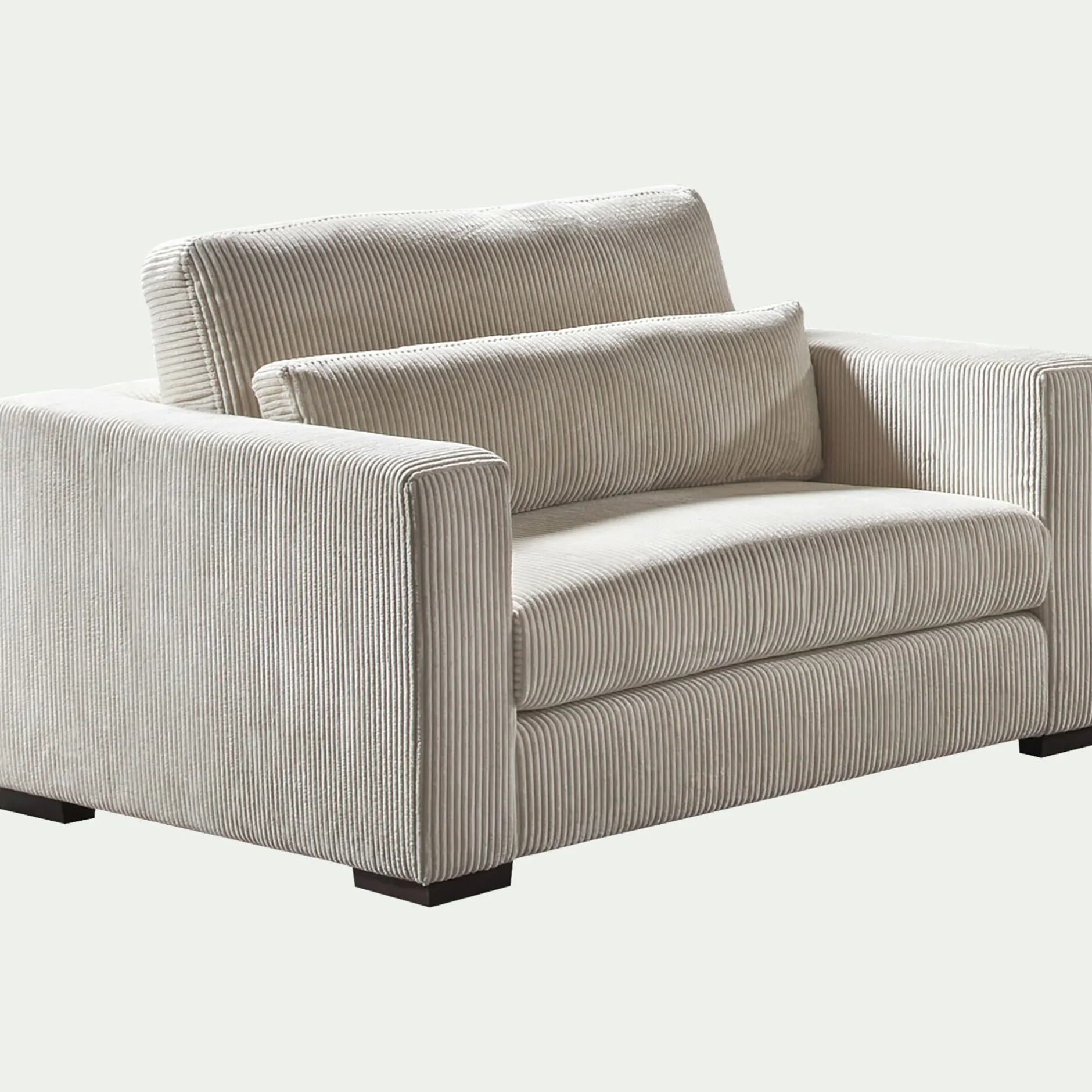 Le fauteuil Batis incarne l’alliance parfaite entre confort et élégance. Sa structure solide en bois massif assure une stabilité et une durabilité exceptionnelles. Revêtu d’un velours côtelé beige, il offre une texture douce et un aspect cocooning. Les coussins déhoussables facilitent l’entretien et permettent de maintenir la fraîcheur du canapé. Il offre un espace généreux pour se détendre en toute tranquillité. Ce fauteuil en velours allie praticité, confort et esthétique, ajoutant une touche de raffinement à votre salon.