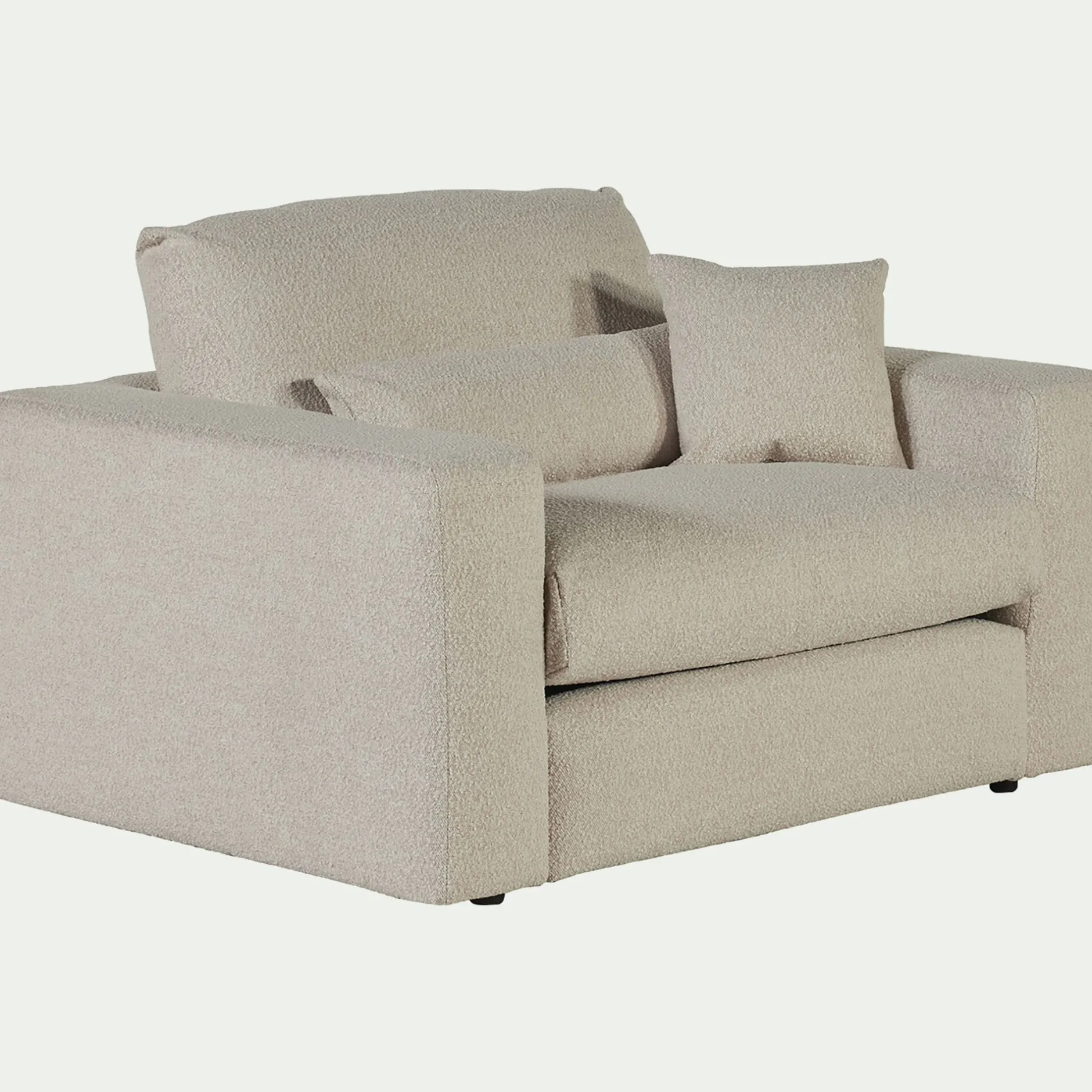 Le fauteuil Piuma est idéal pour se prélasser dans votre salon. Avec sa grande assise, ce fauteuil en tissu bouclette vous offre un confort exceptionnel. Il vous permet de vous détendre au coeur de coussins moelleux dans un nuage de douceur renforcé par son tissu délicat. Ce fauteuil de couleur blanc écru apporte également une touche design moderne et élégante à votre salon. Son tissu bouclette donne un côté cocooning qui vous permet de transformer votre pièce en un espace chaleureux.